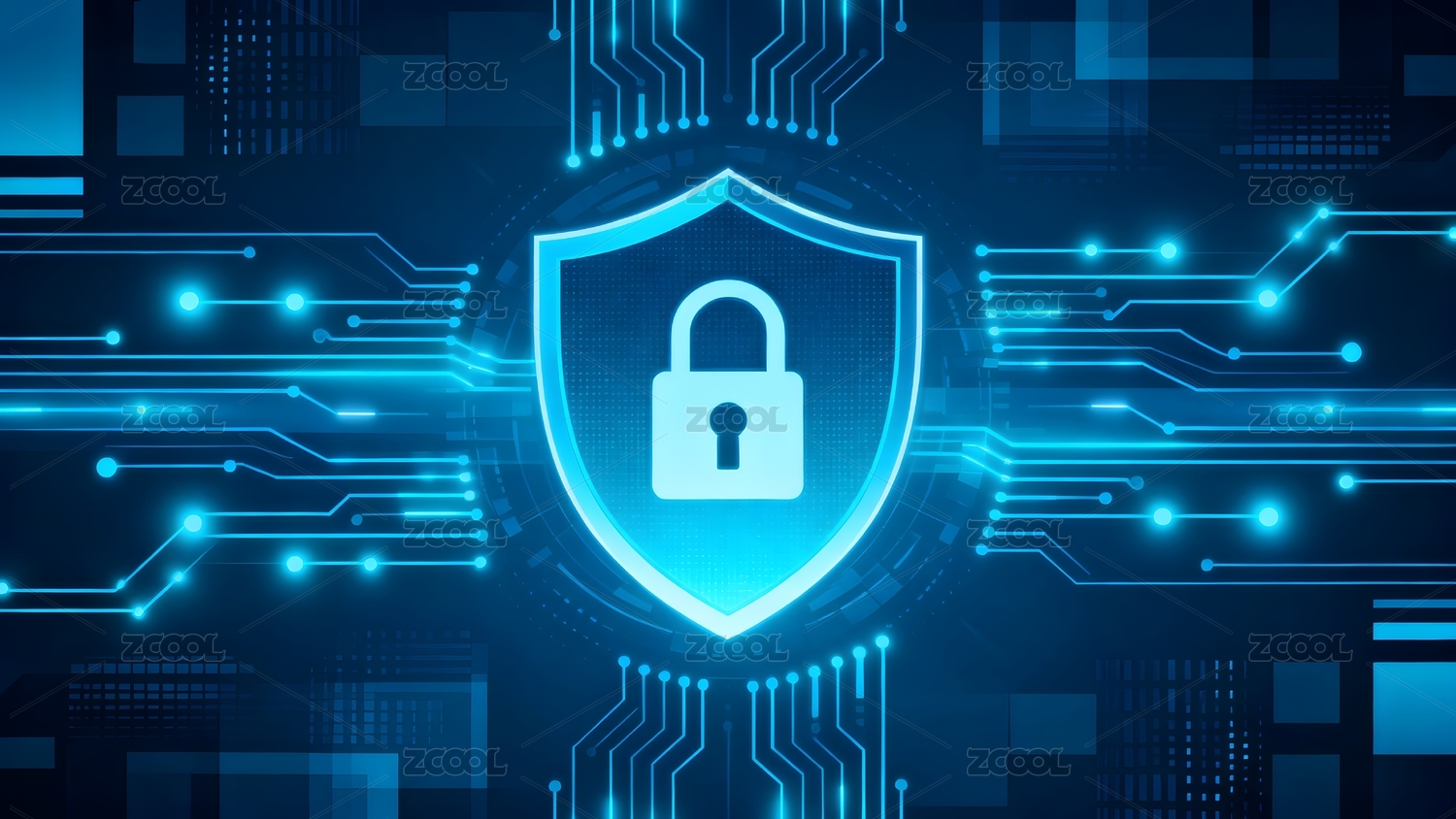 蓝色科技盾牌与电路图案