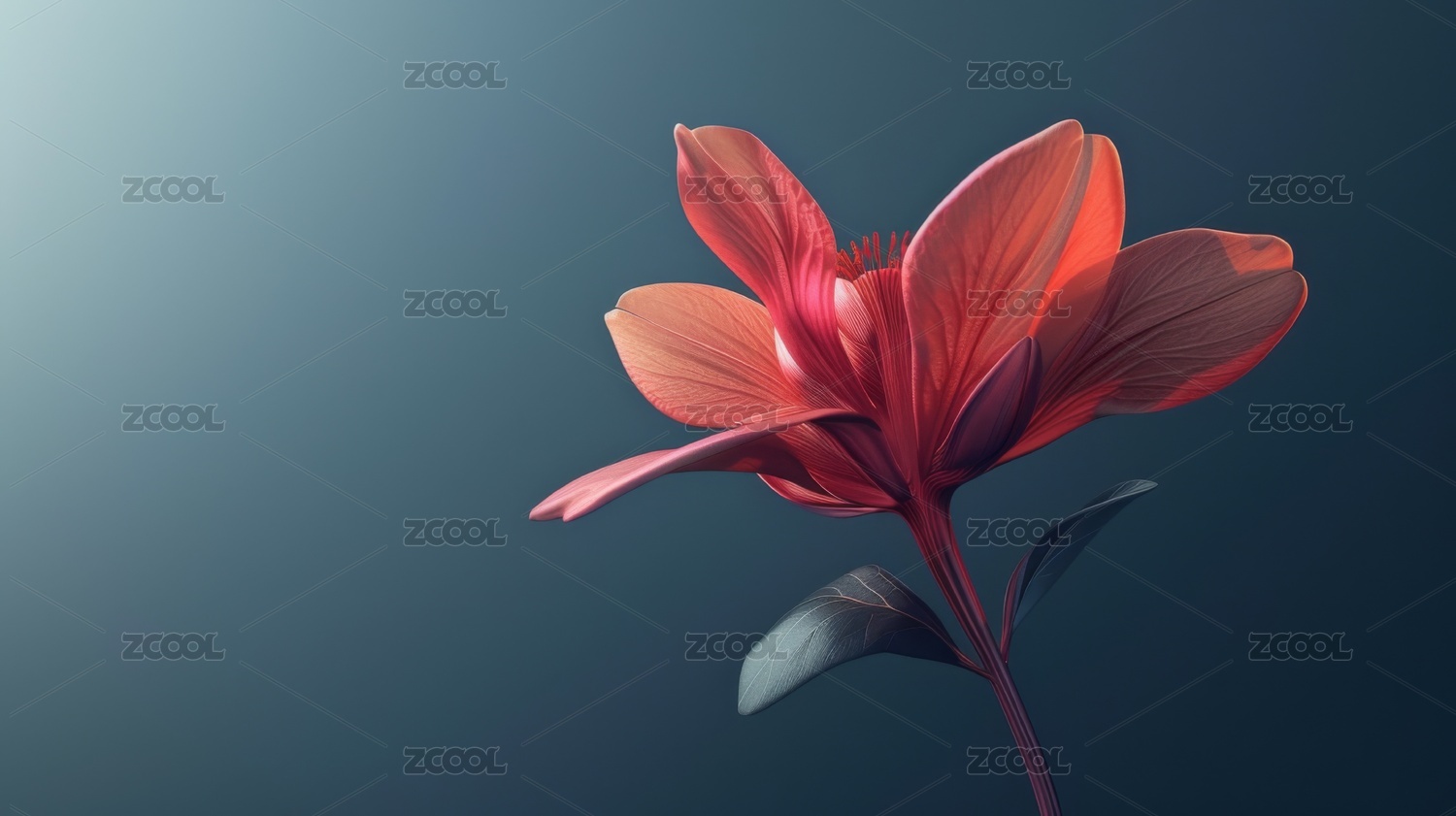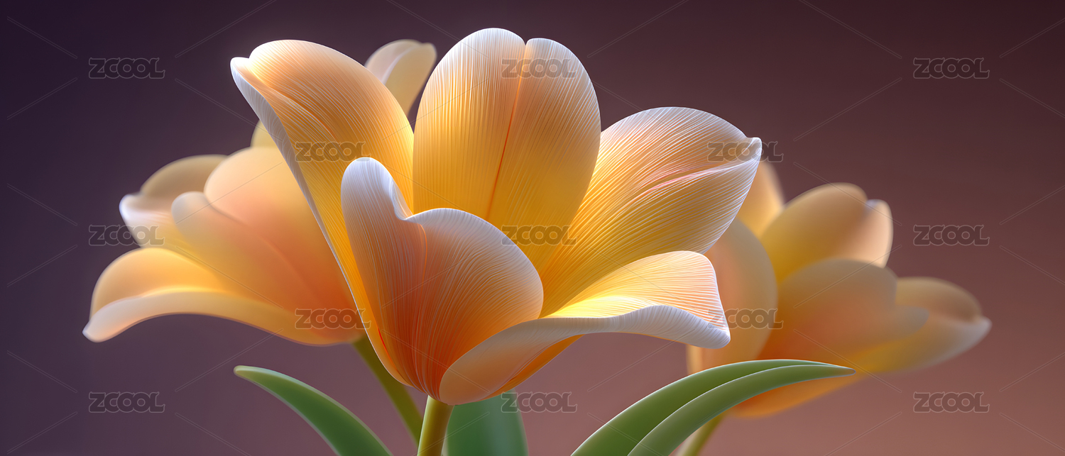 黑背景烟雾流动的荧光色3D全息透明花朵