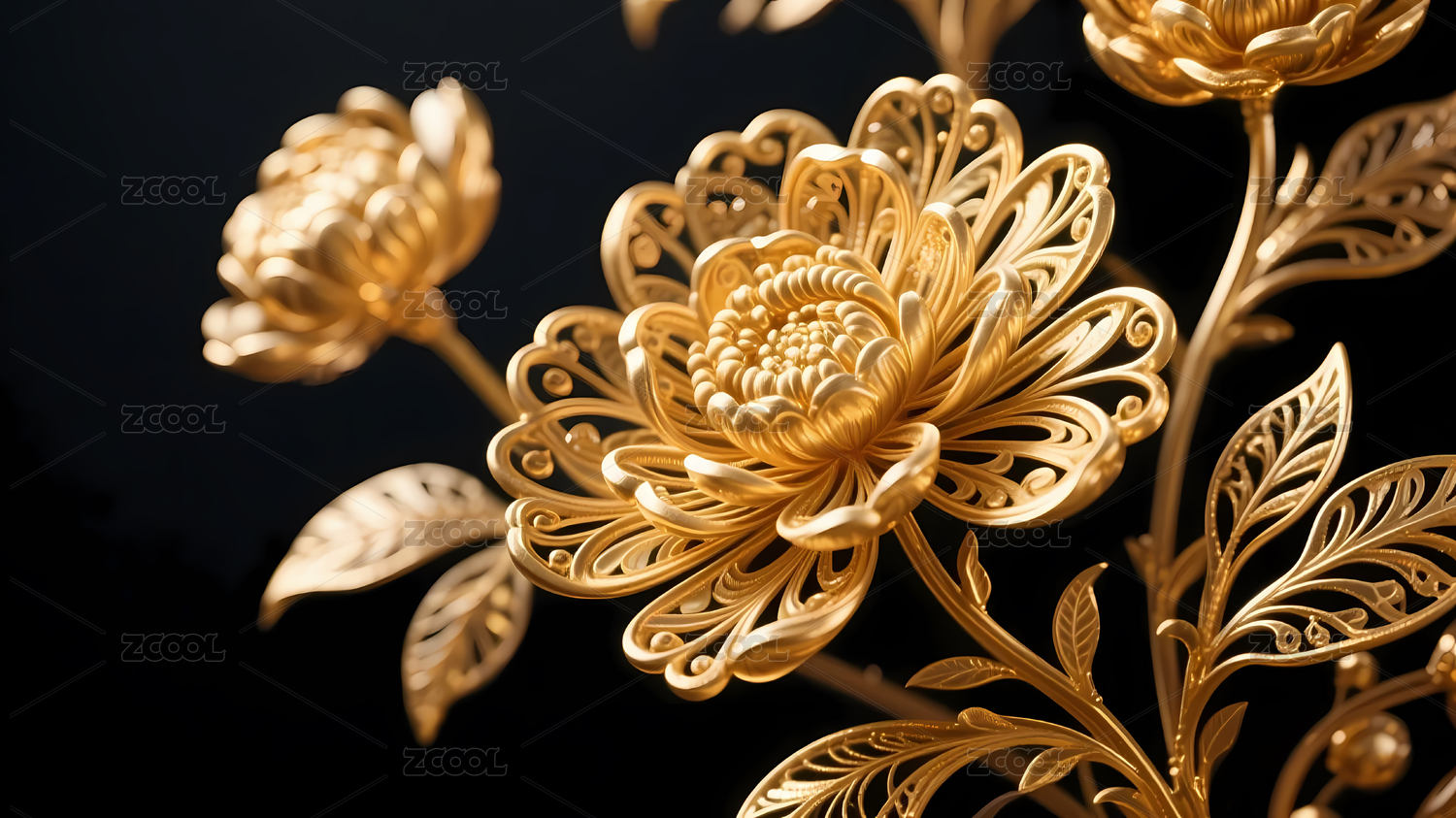 金色镂空花卉深色背景