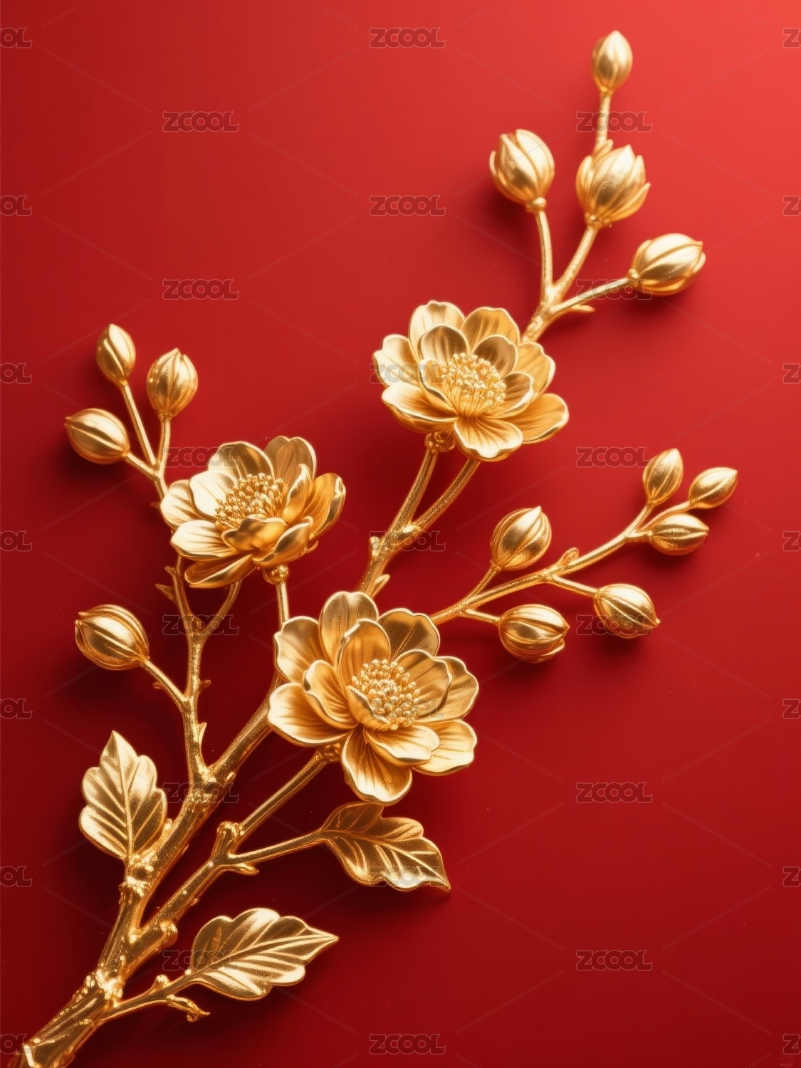 金色花卉装饰红背景场景