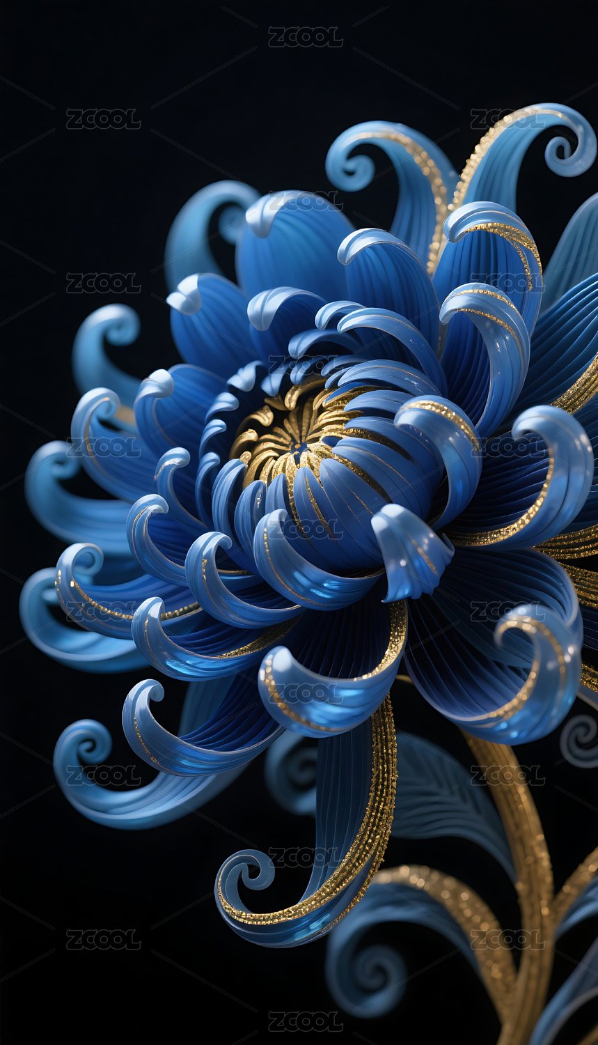 深蓝色渐变立体卷曲琉璃蓝菊花