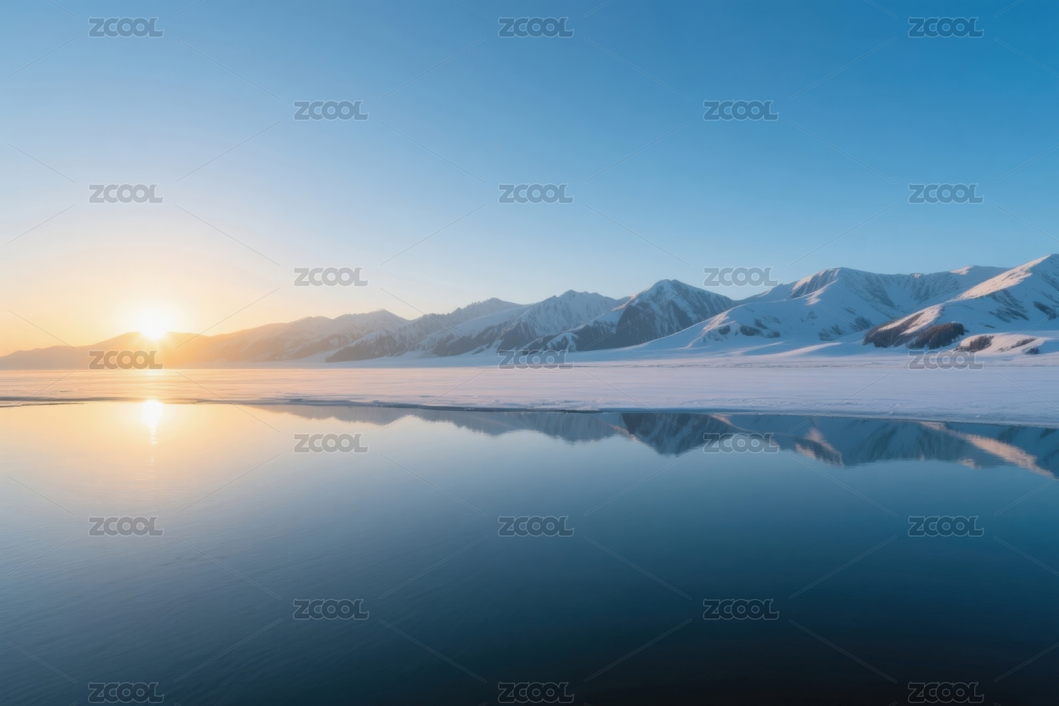 蓝天,山脉,湖泊,阳光,水面,日出,晨光,天空,倒影,冰雪