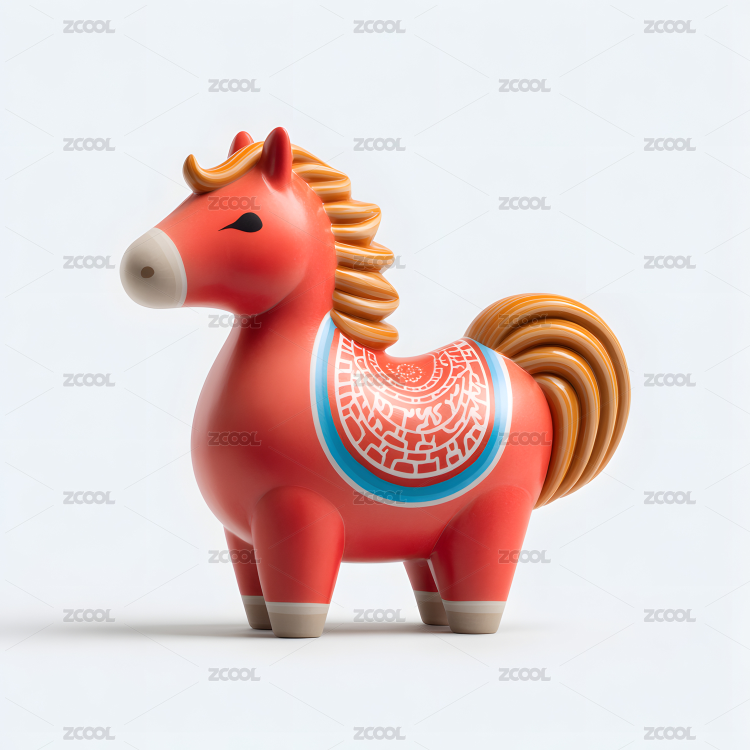 灰色背景矗立着一匹低矮的多边形马高清图片
