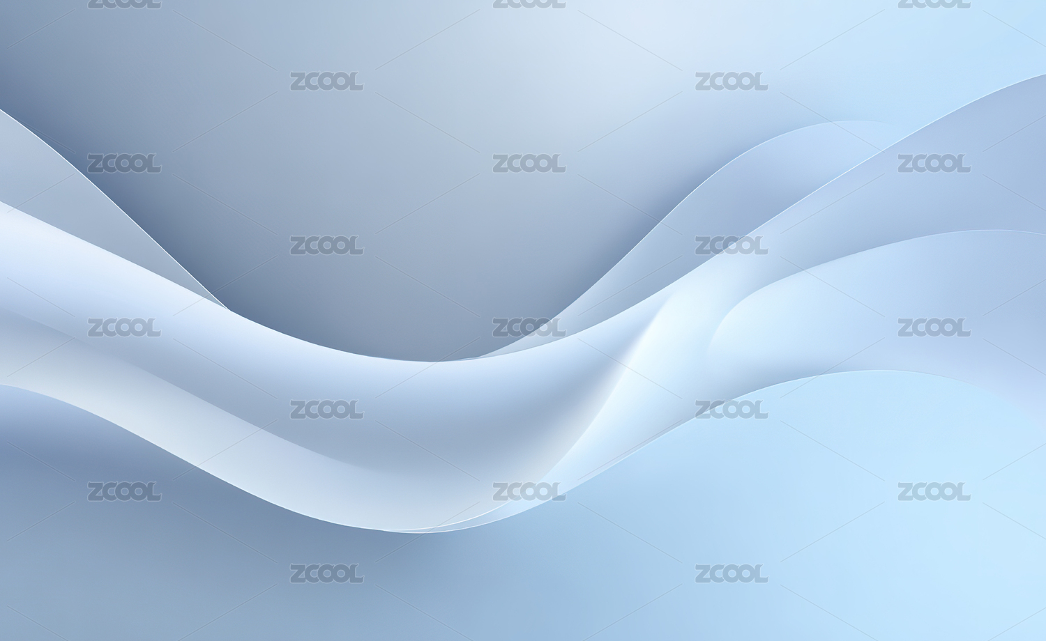 蓝色背景下白色飘带蜿蜒呈现简约治愈的视觉