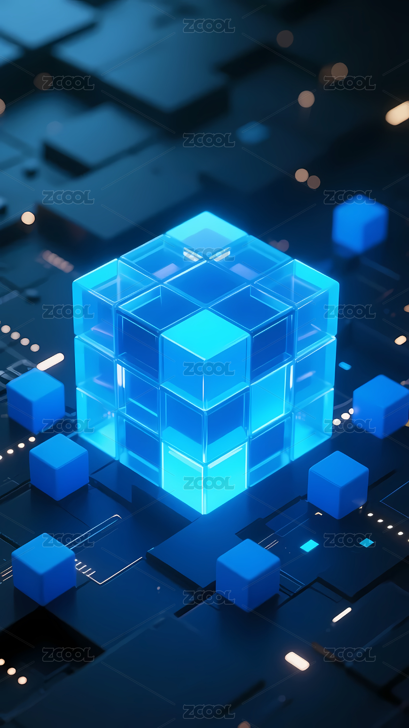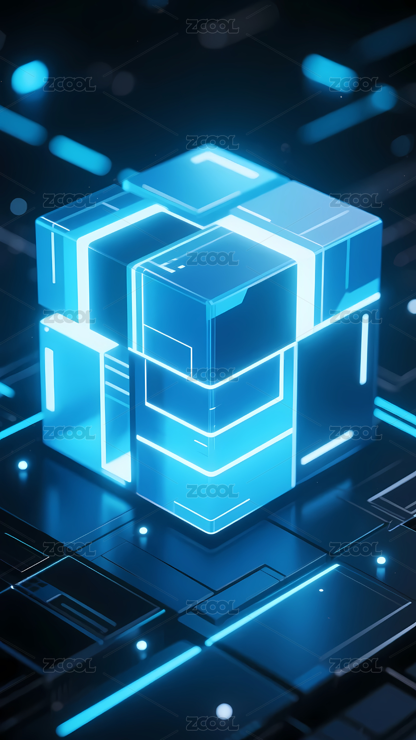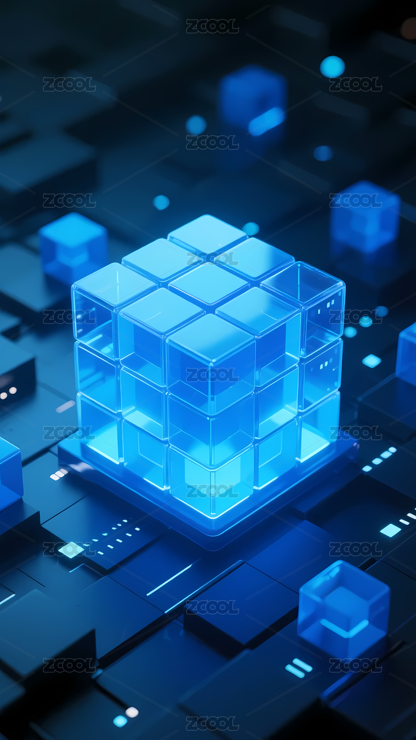 蓝色,科技,发光,未来,冷色,神秘,深蓝,光斑,立方体,立体