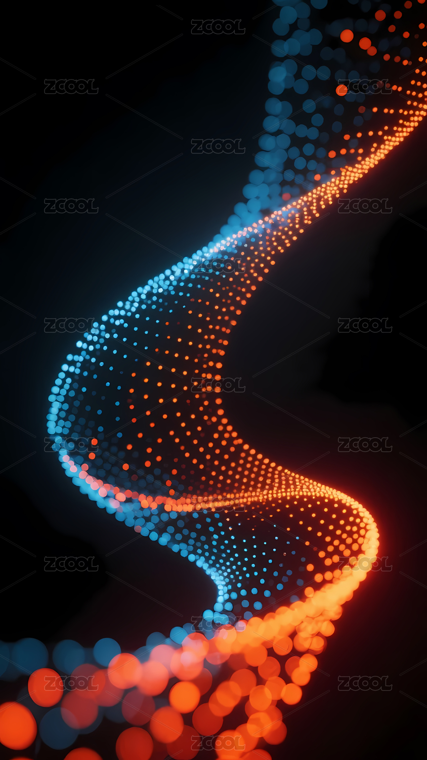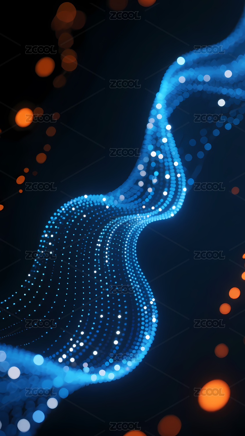 蓝色,光点,橙色,艺术,抽象,动态,流动,光影,曲线,深黑
