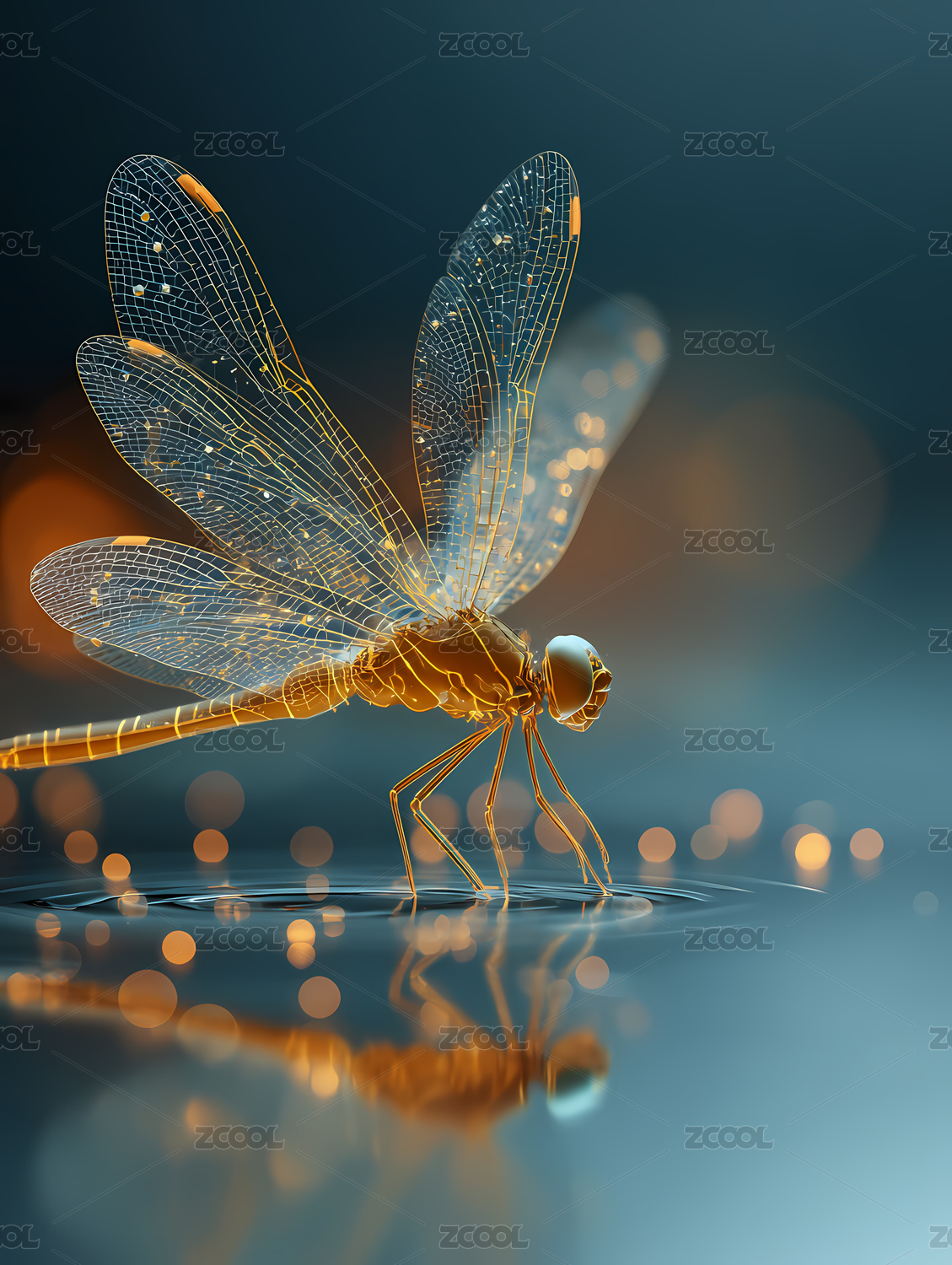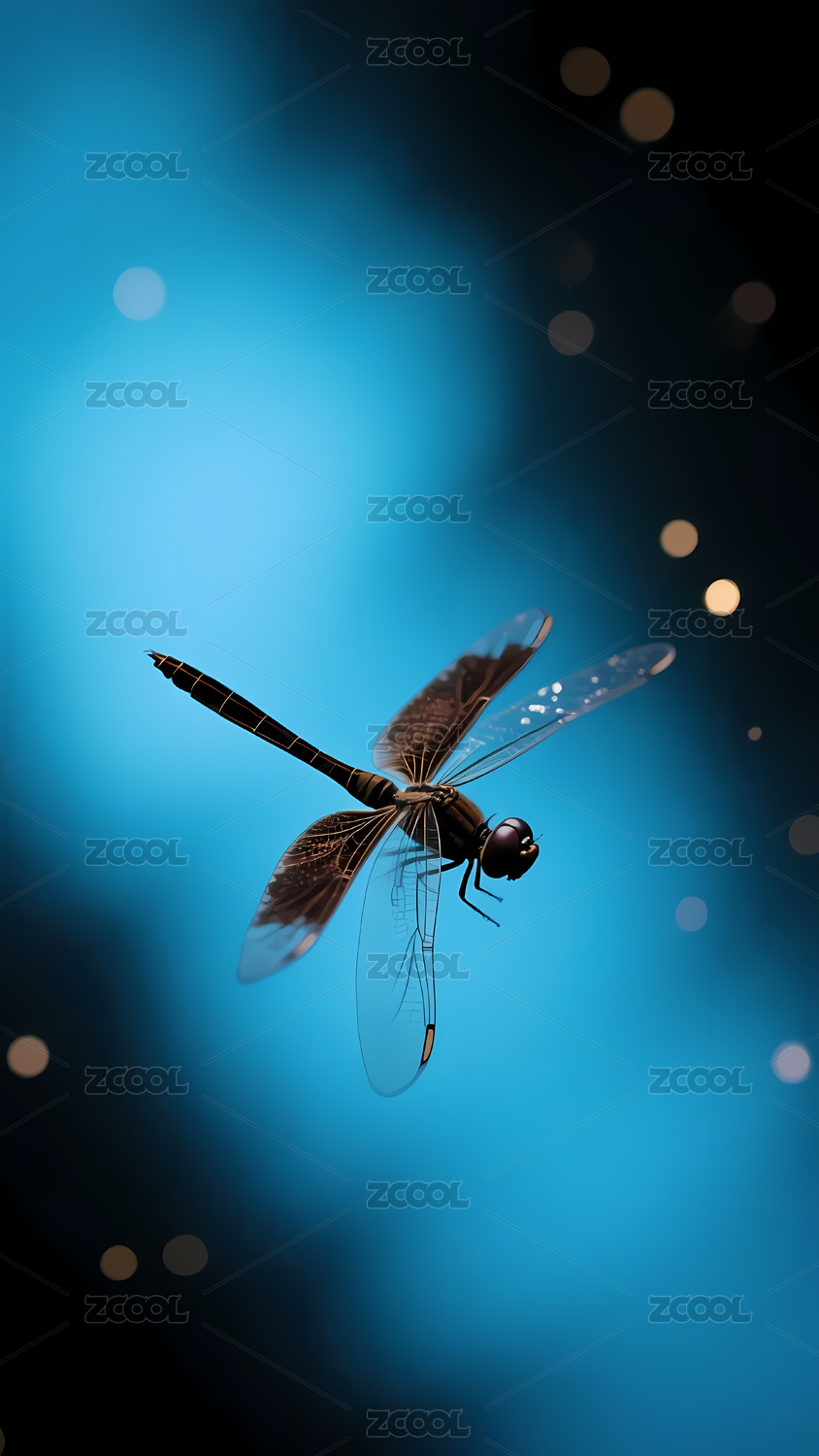 蓝色,渐变,光斑,自然,细节,蜻蜓,翅膀,昆虫,生态,静谧