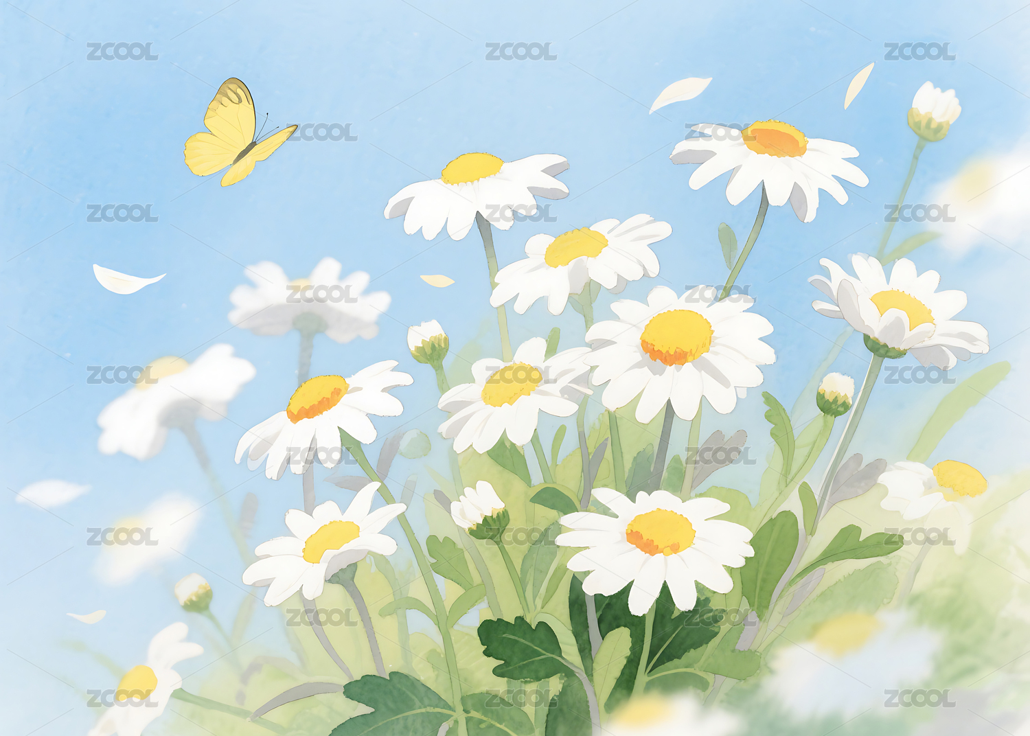 雏菊,花朵,花海,绿色,自然,柔美,插画,矢量,装饰,背景