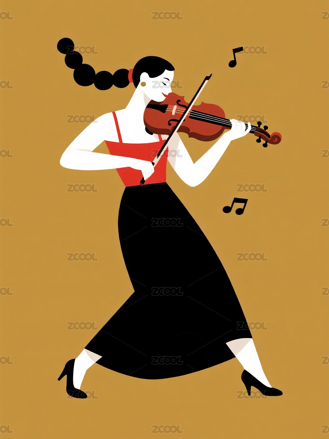 弹奏,小提琴,背景,壁纸,插画,女孩,人物,扁平风,音符,音乐