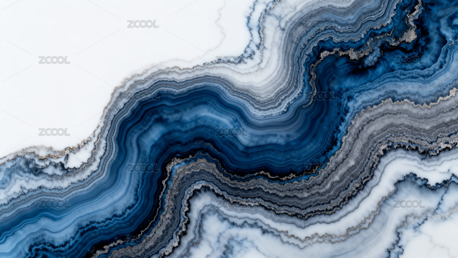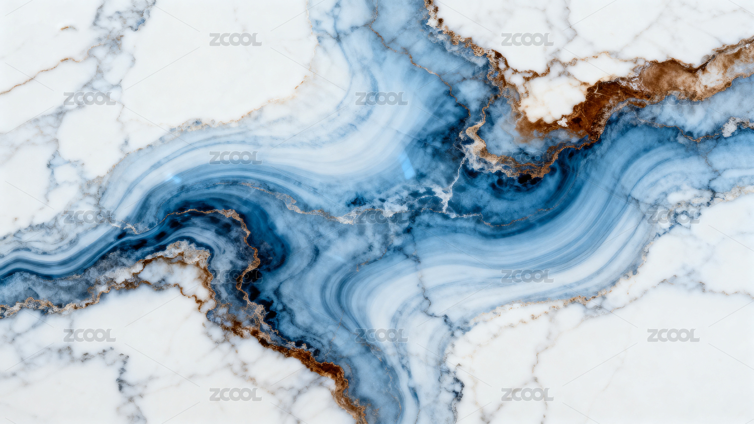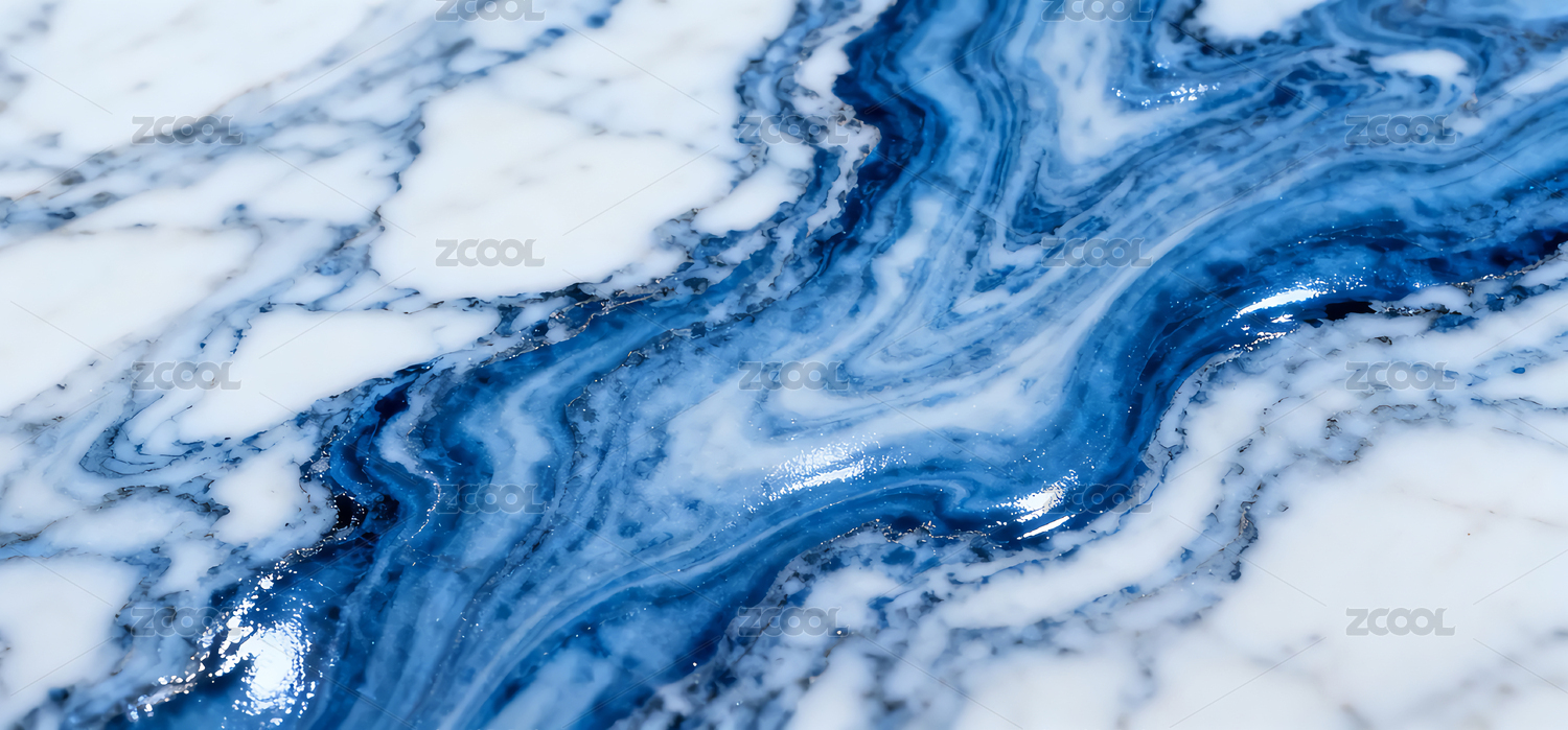 蓝白交织的天然大理石纹理特写