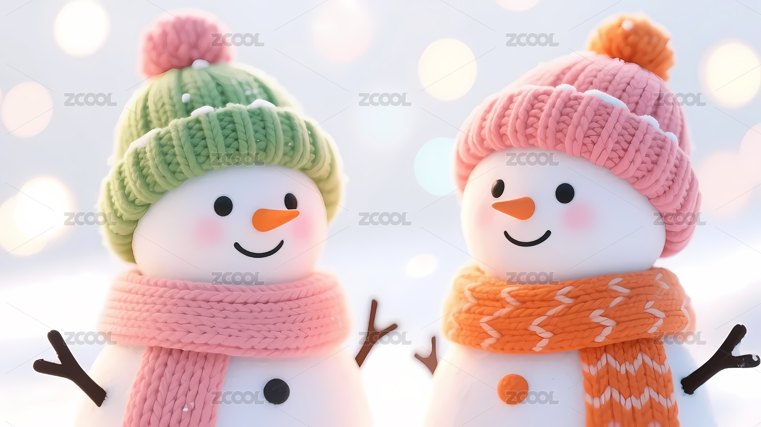 彩色围巾雪人与光斑背景