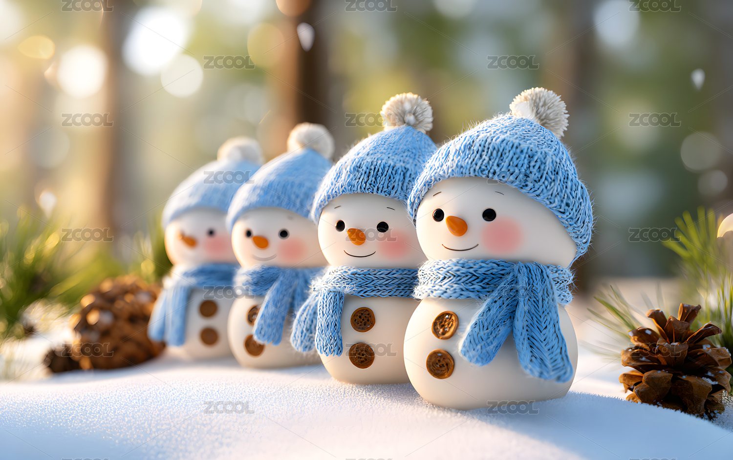 雪地上一排可爱的小雪人