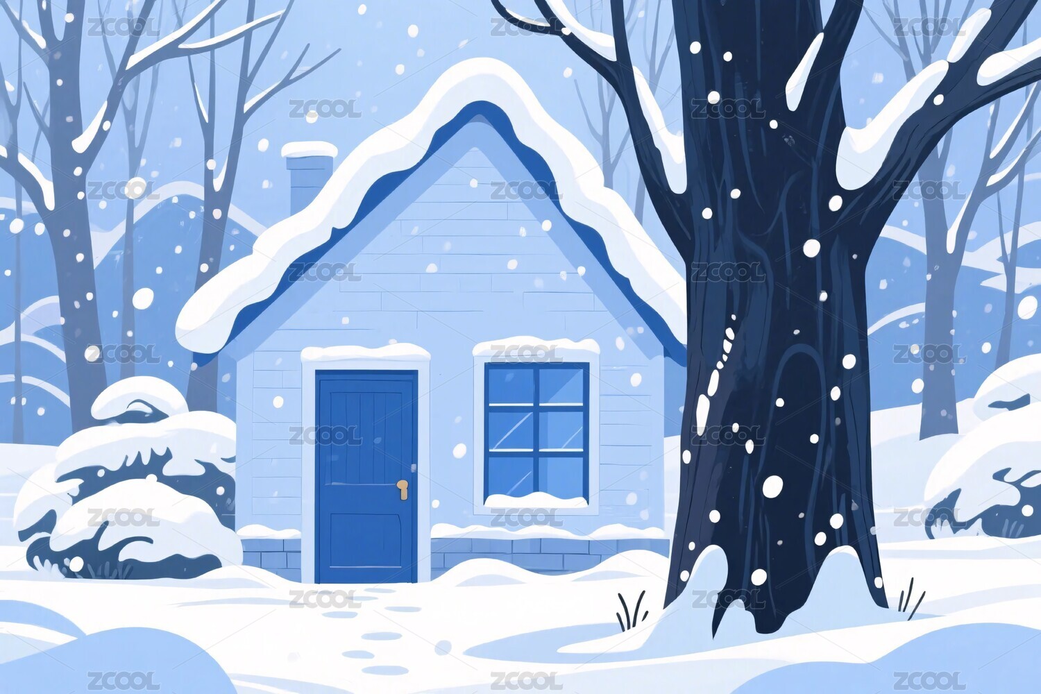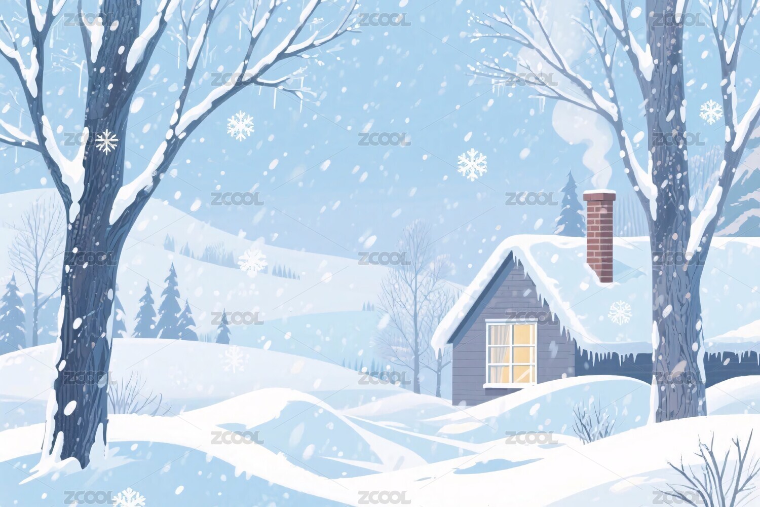 冬日雪景小屋插画