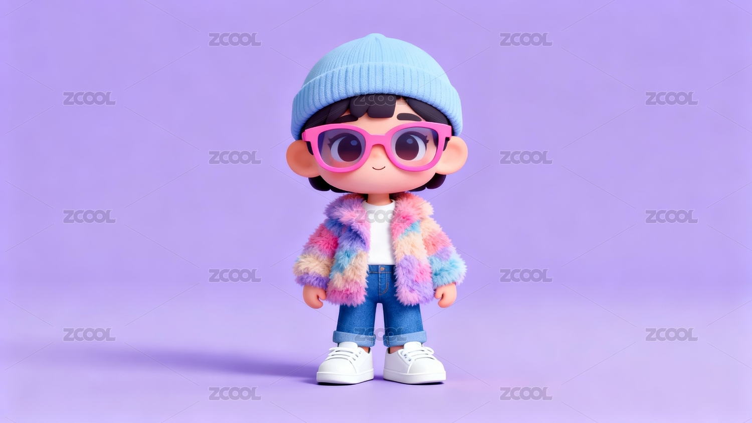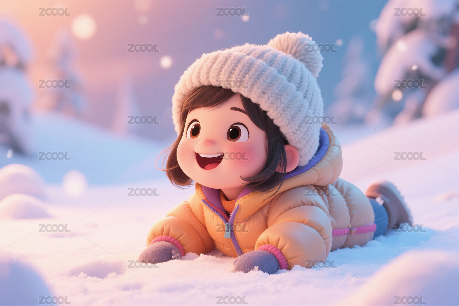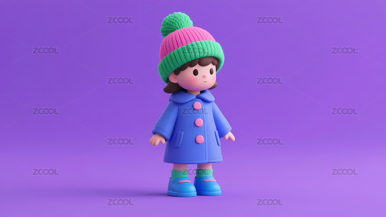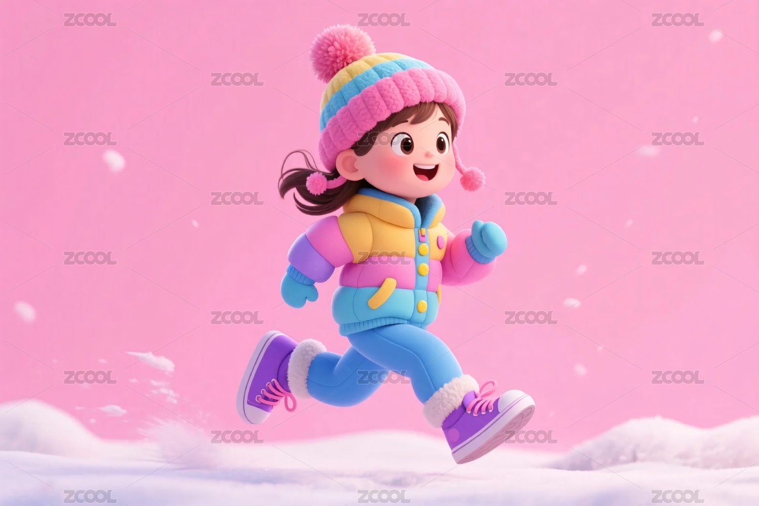 卡通女孩,冬季,外套,帽子,手套,鞋子,背景,跑步,插画,色彩