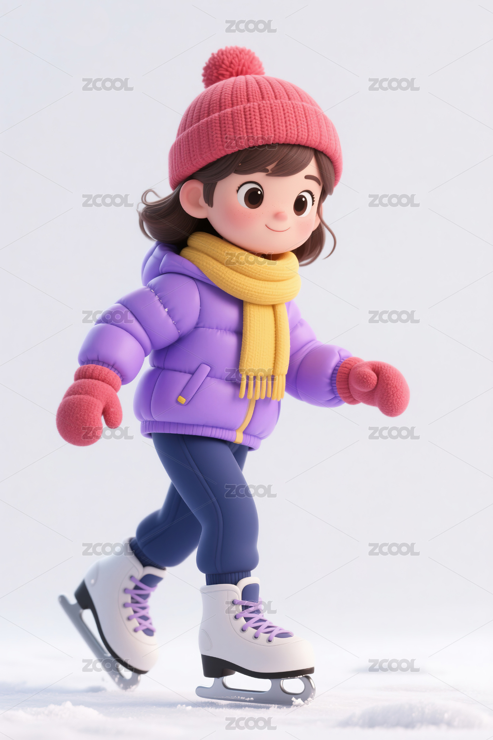 冰雪女孩快乐滑冰冬季童趣蓝白系