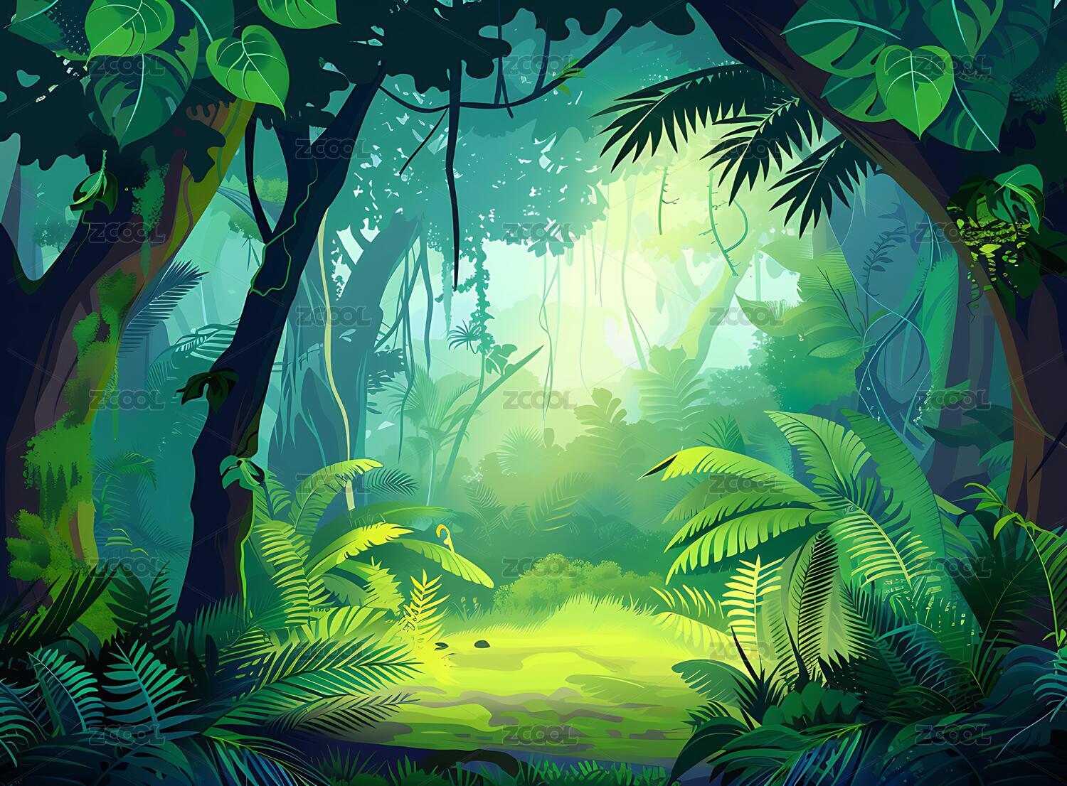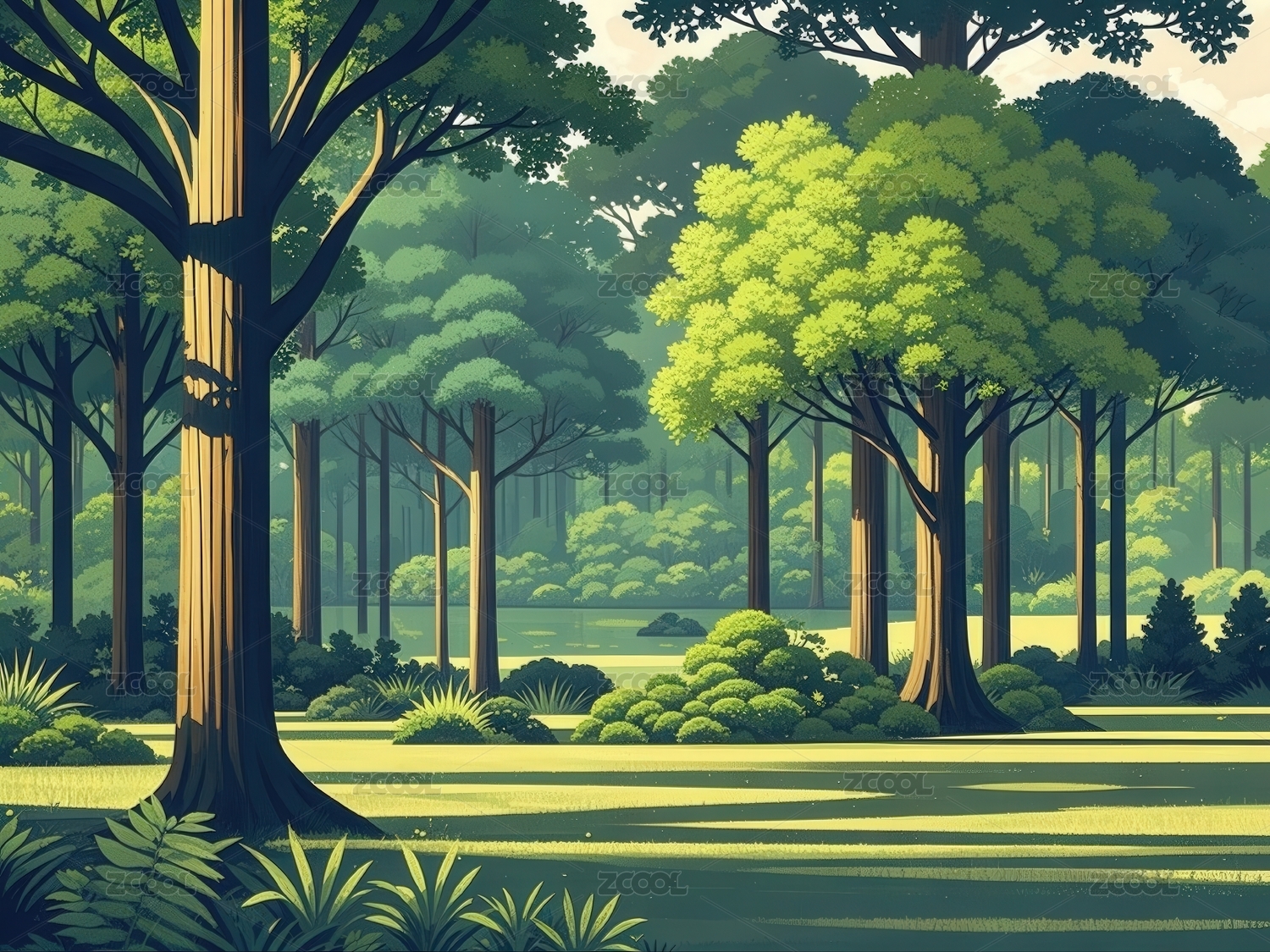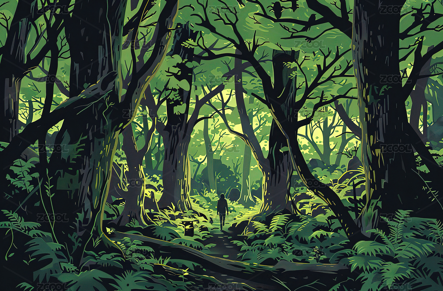 森林,树木,插画,绿色,植被,丛林,自然,风景,森林风景,树木插画
