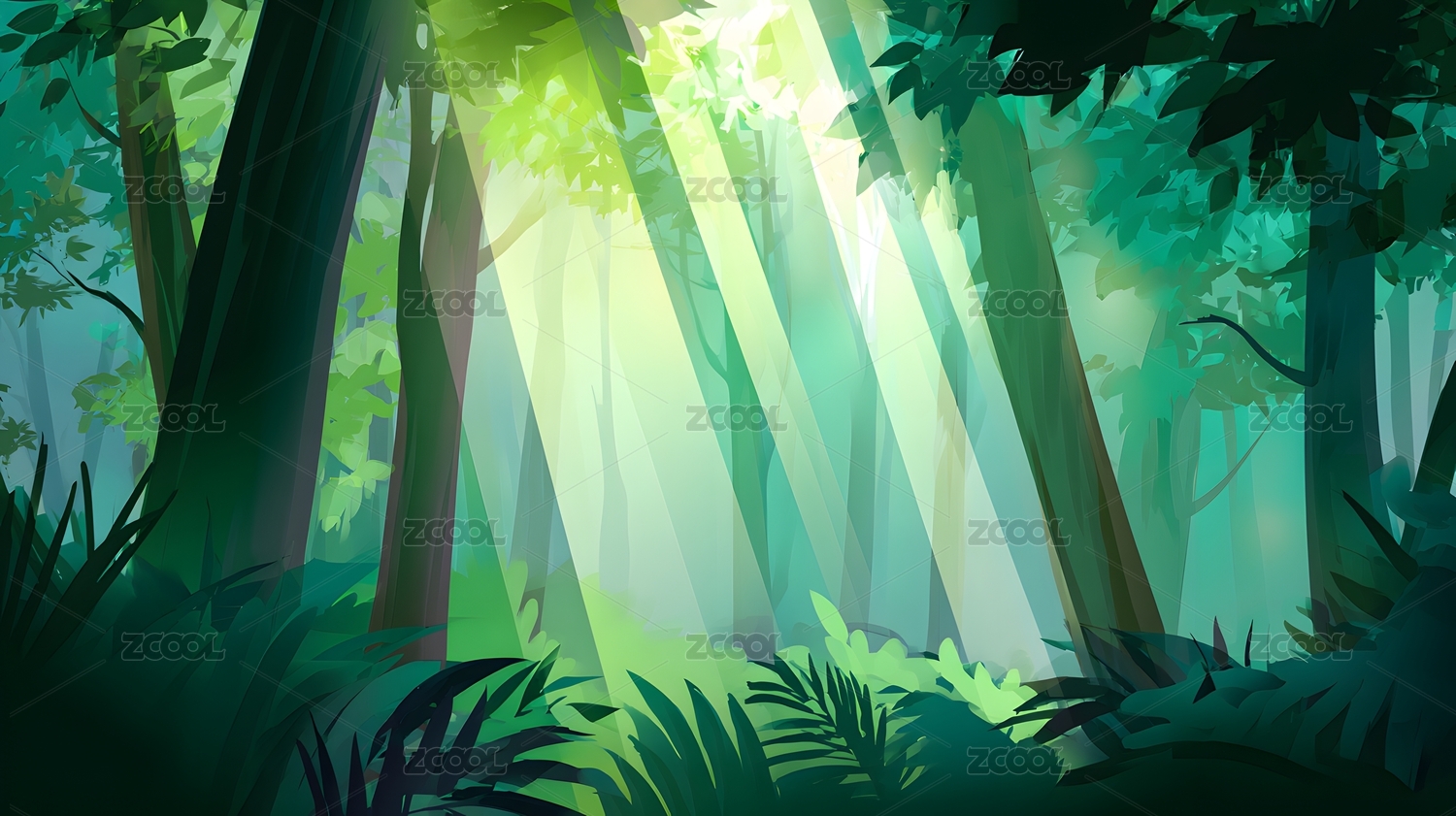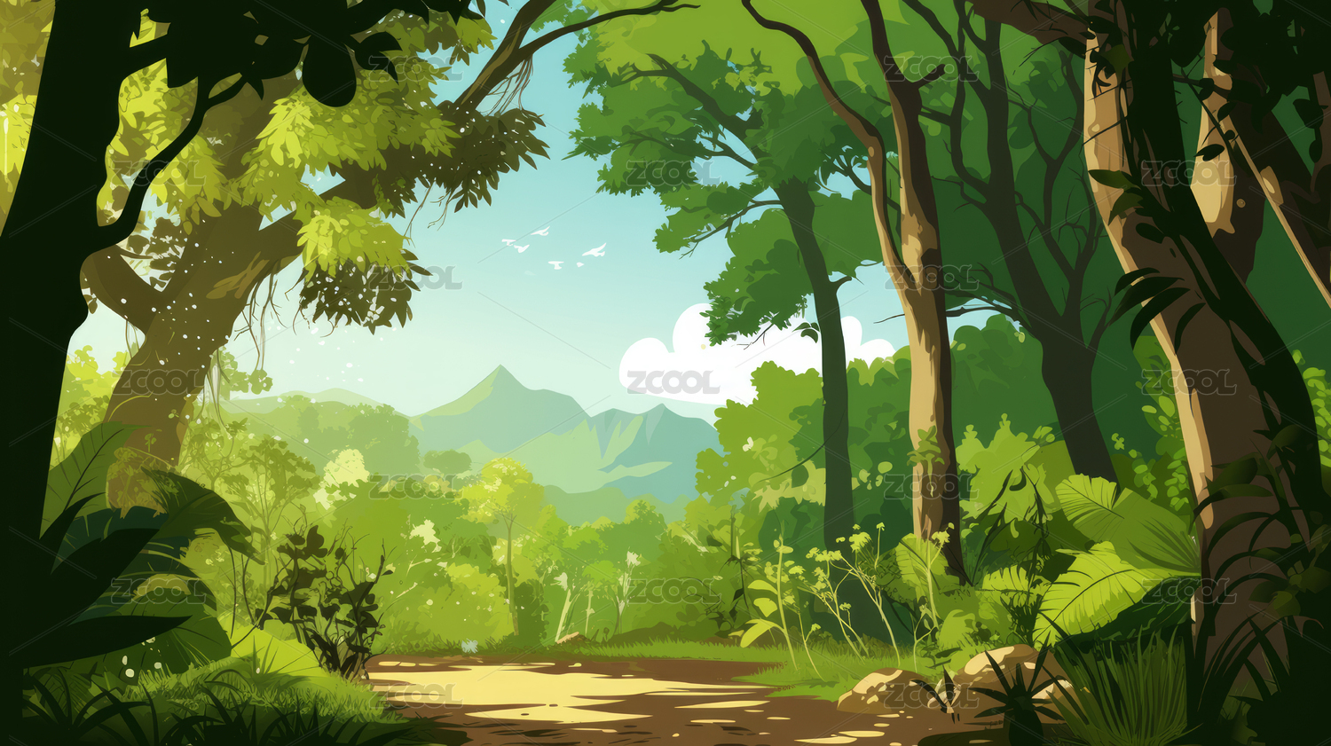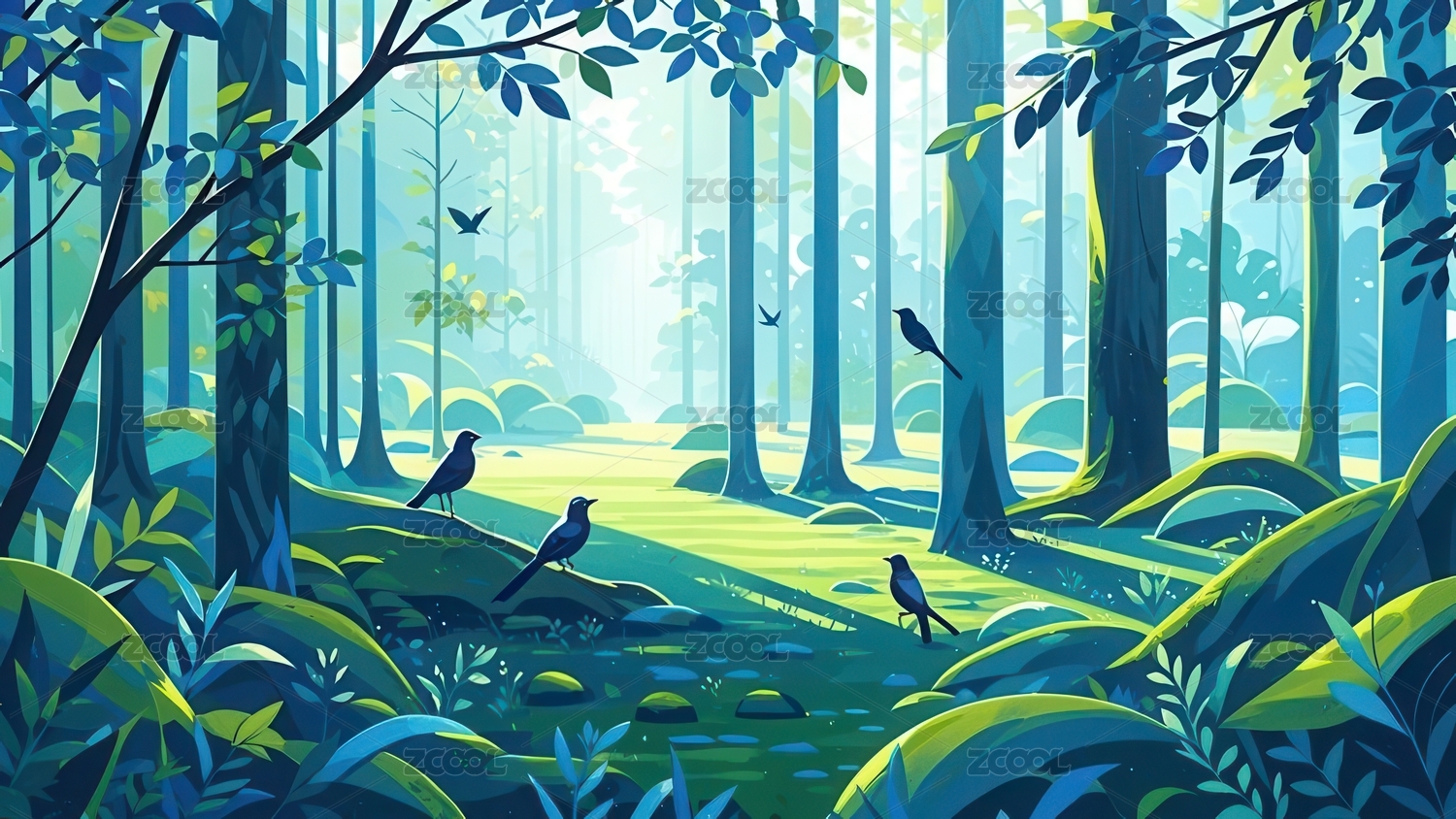森林,树木,插画,绿色,植被,丛林,自然,风景,森林风景,树木插画