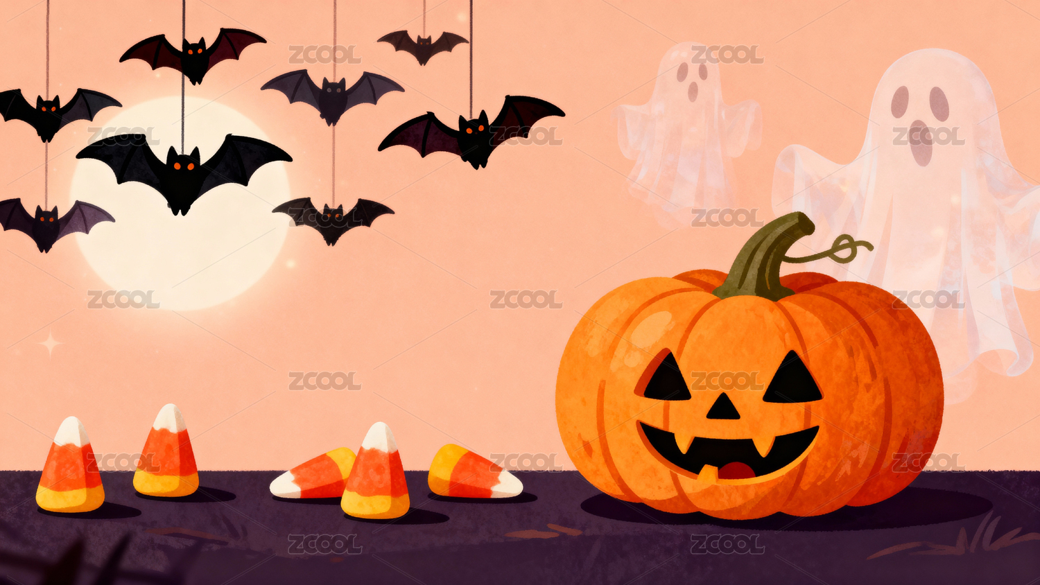 万圣节南瓜幽灵蝙蝠蜘蛛网