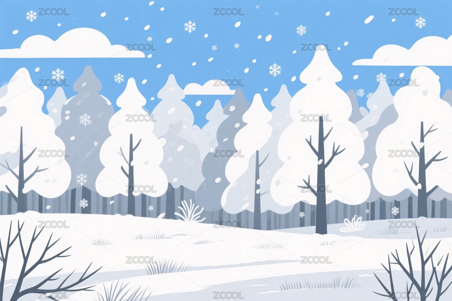 冬季雪景树林插画