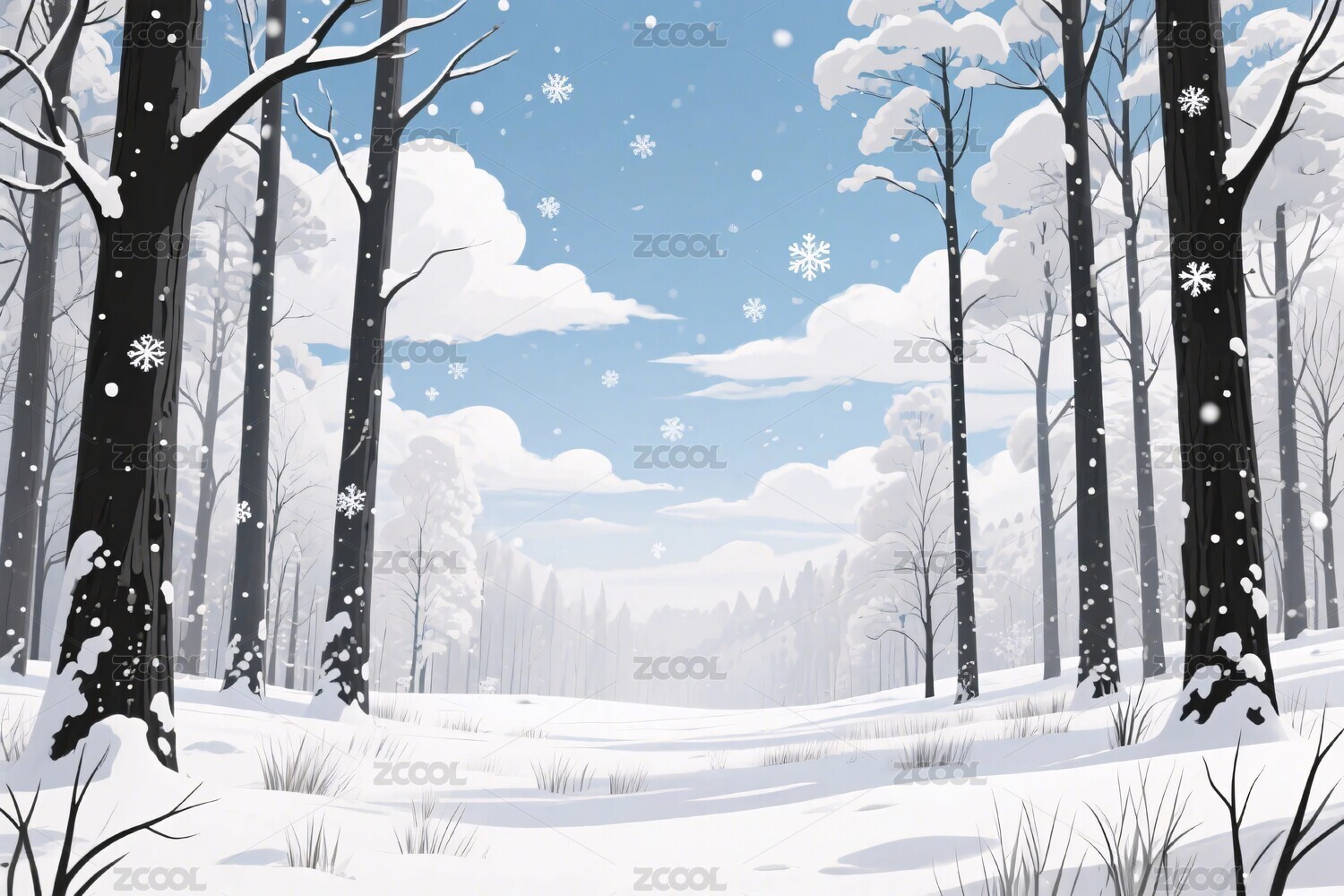 冬日雪景树林插画