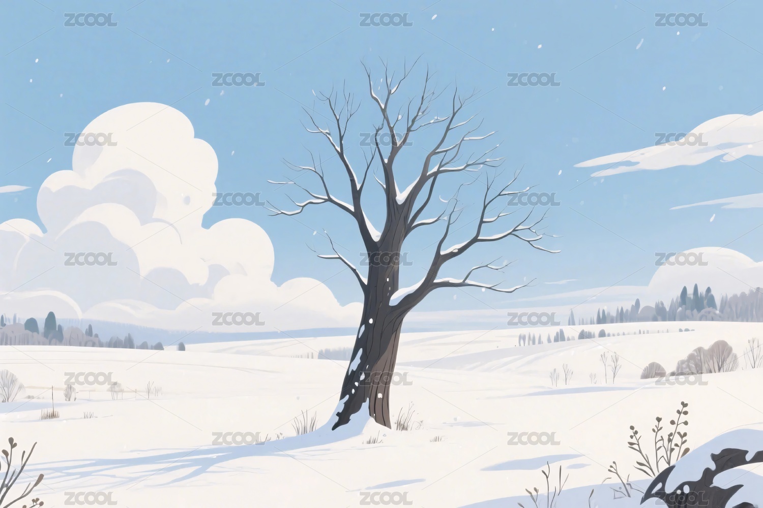 冬季雪景枯树插画