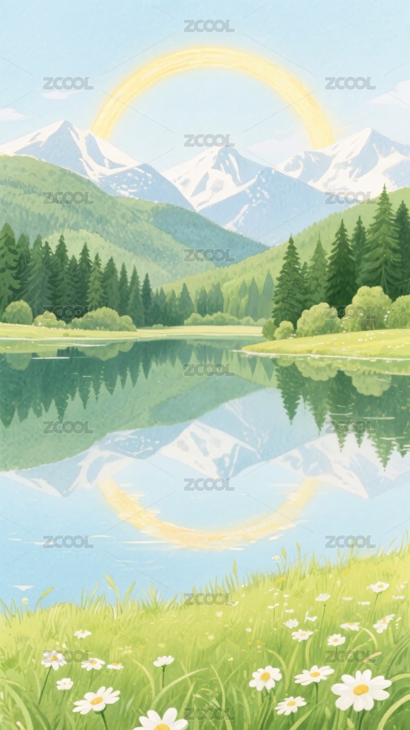 湖光山色风景插画