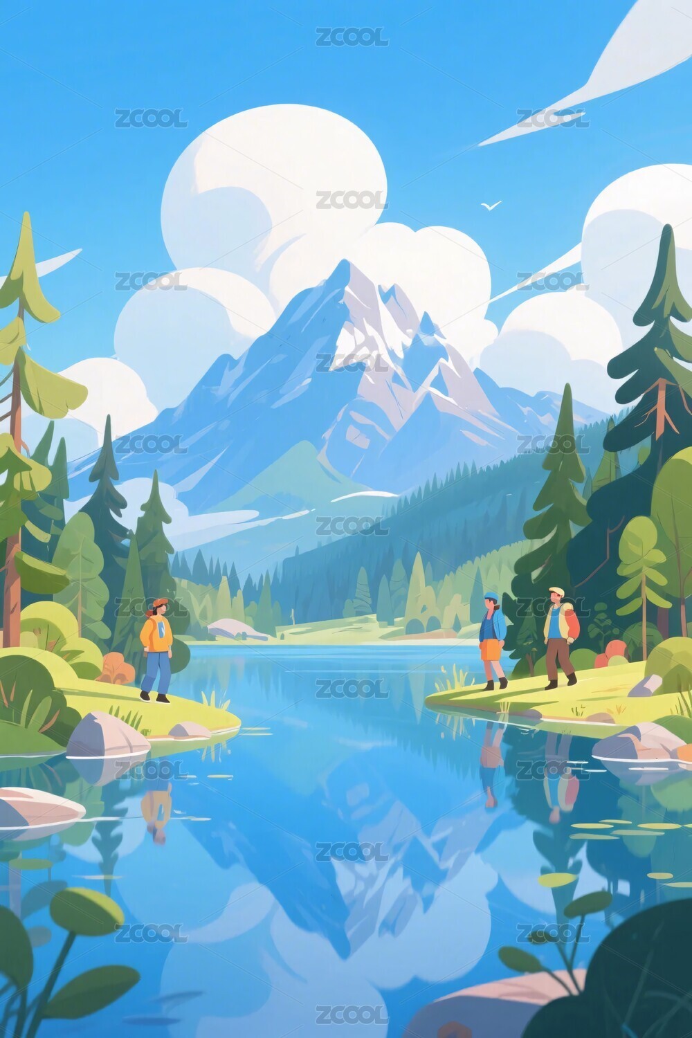 山水湖泊风景插画