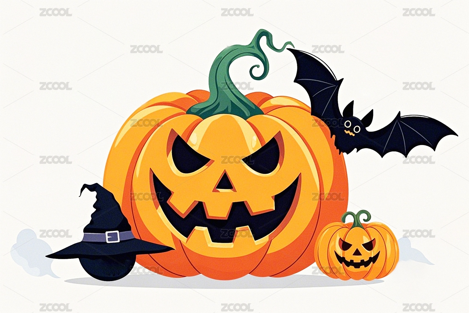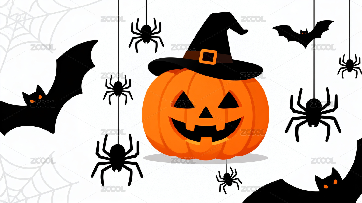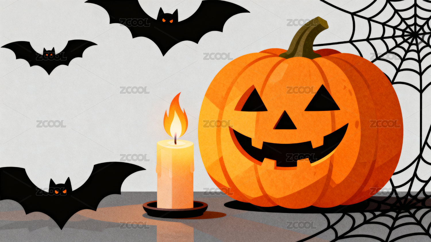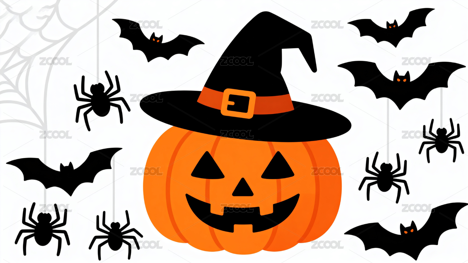 万圣节南瓜与蝙蝠蜘蛛装饰