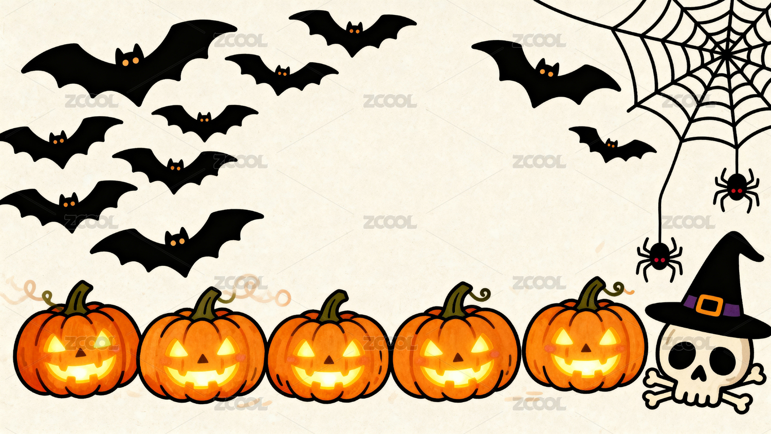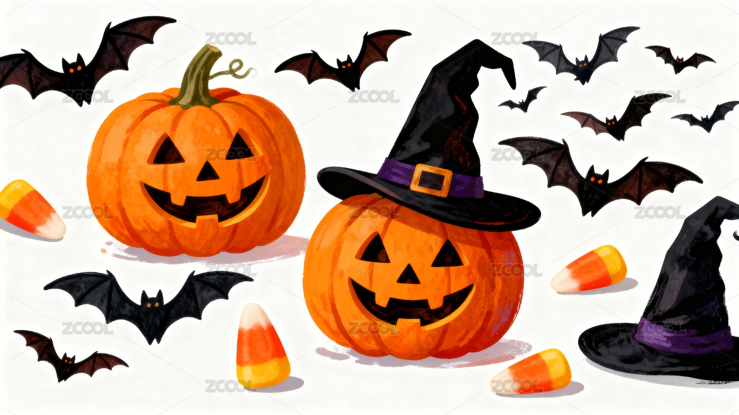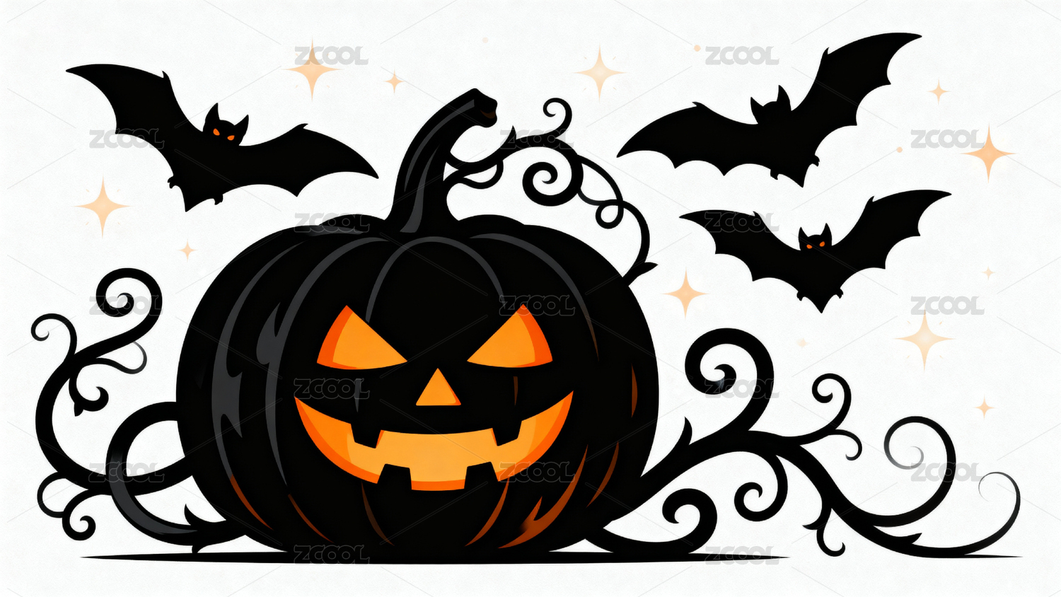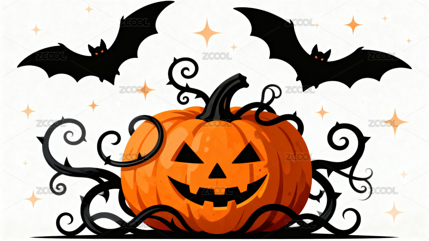 万圣节南瓜与蝙蝠蜘蛛装饰