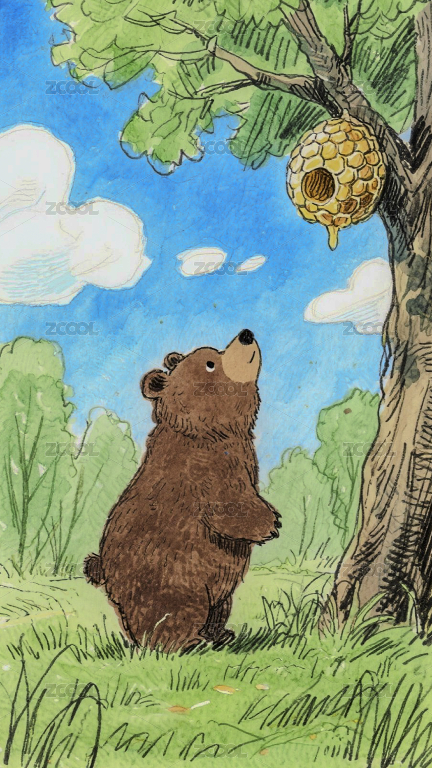 小熊,棕熊,室内,插画,卡通,动物,可爱,儿童插画,萌态,动物伙伴