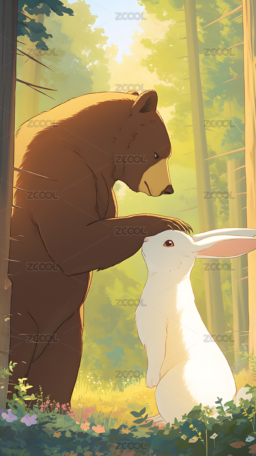 熊爸爸和熊宝宝的森林嬉戏卡通插画