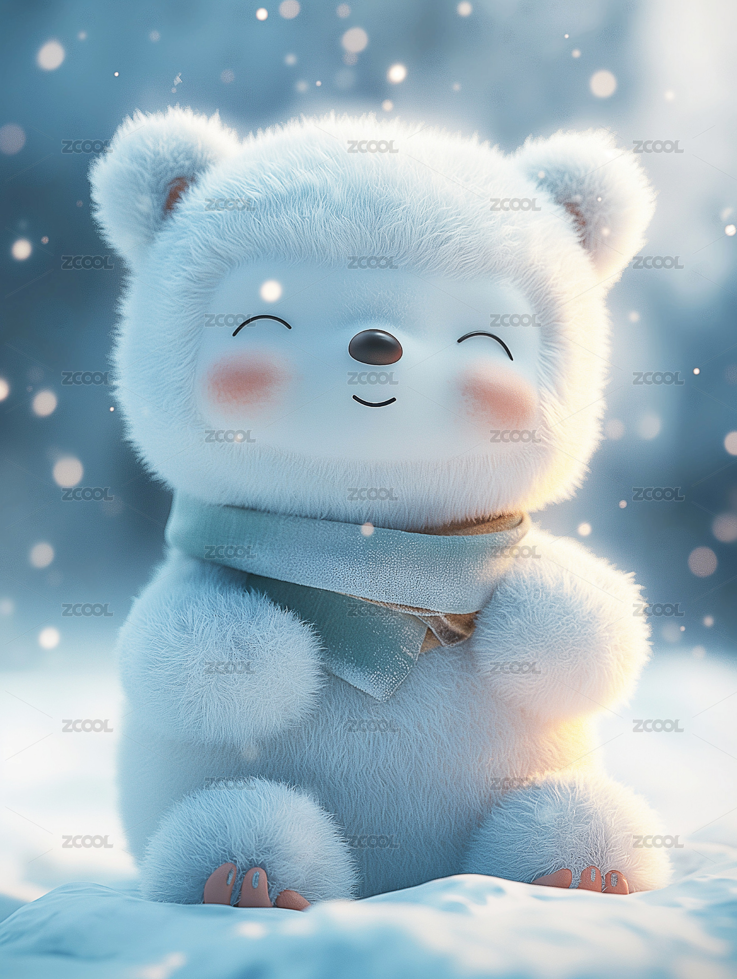 3D戴着围巾的北极熊卡通形象