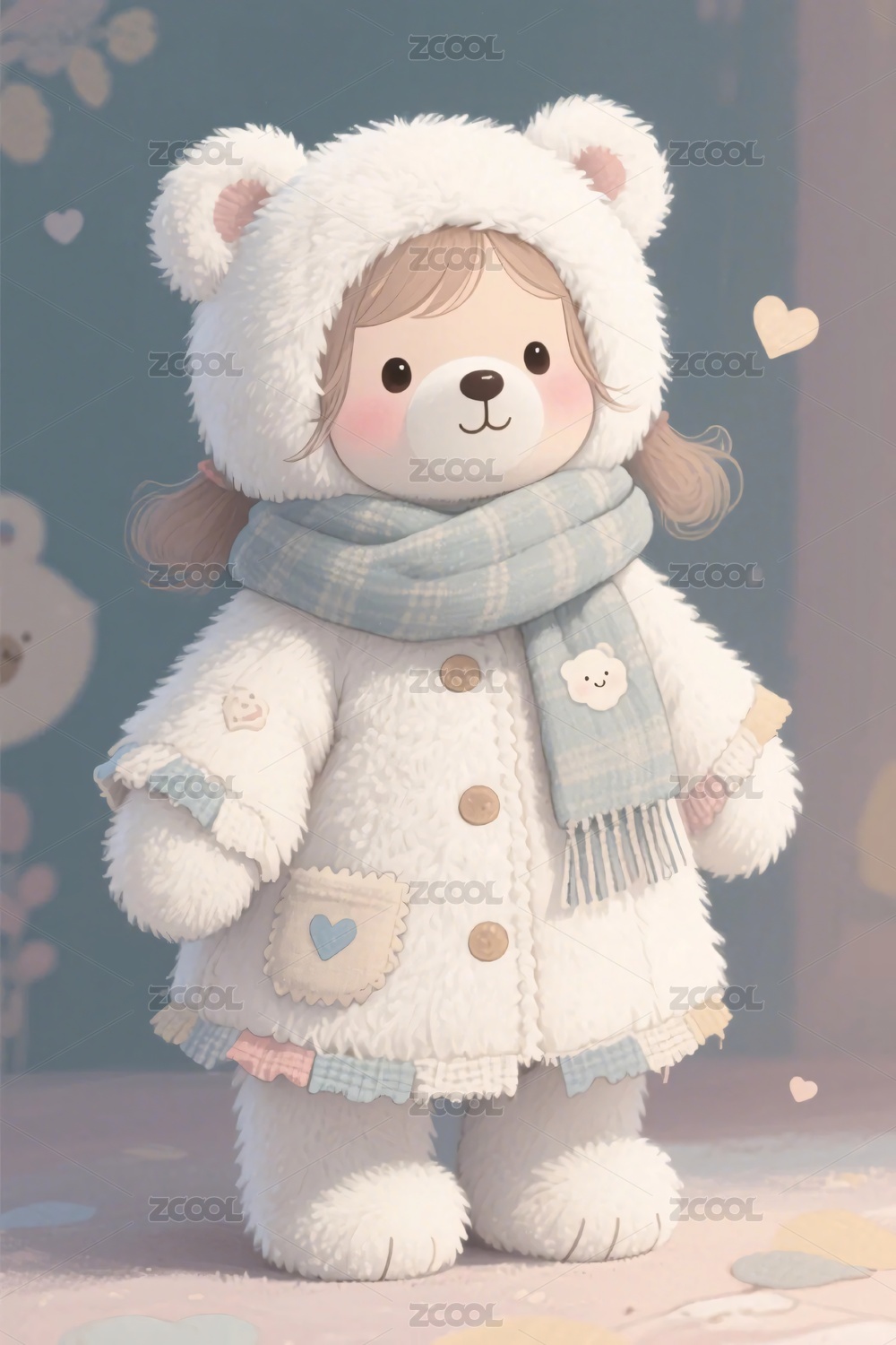 白熊,卡通,可爱,软萌,插画,背景,冬季,围巾,帽子,温暖