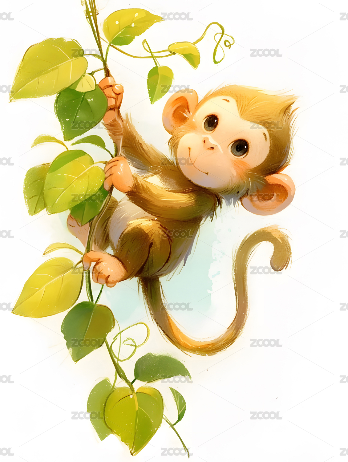 水彩插画卡通猴子