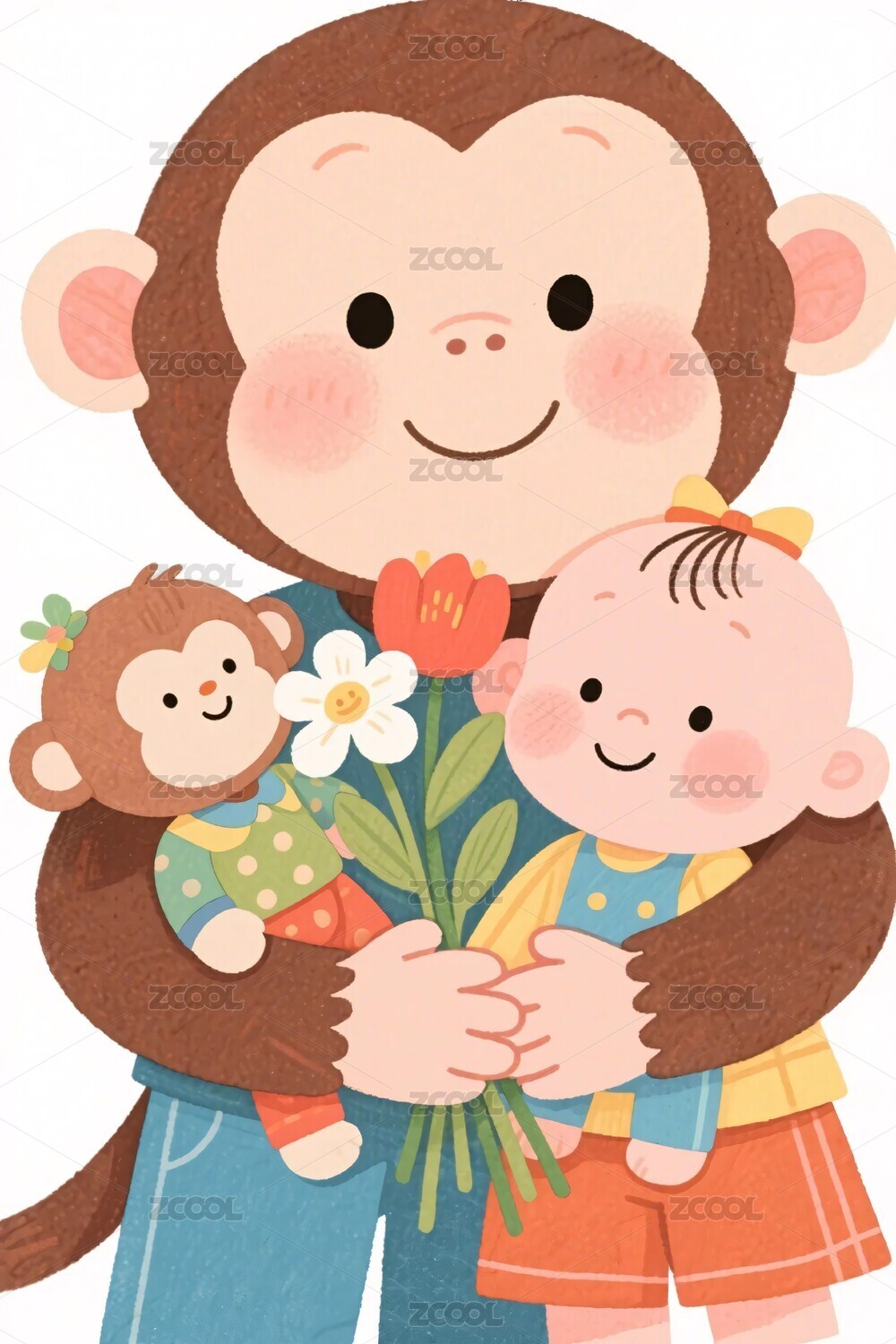 卡通猴子抱小孩插画