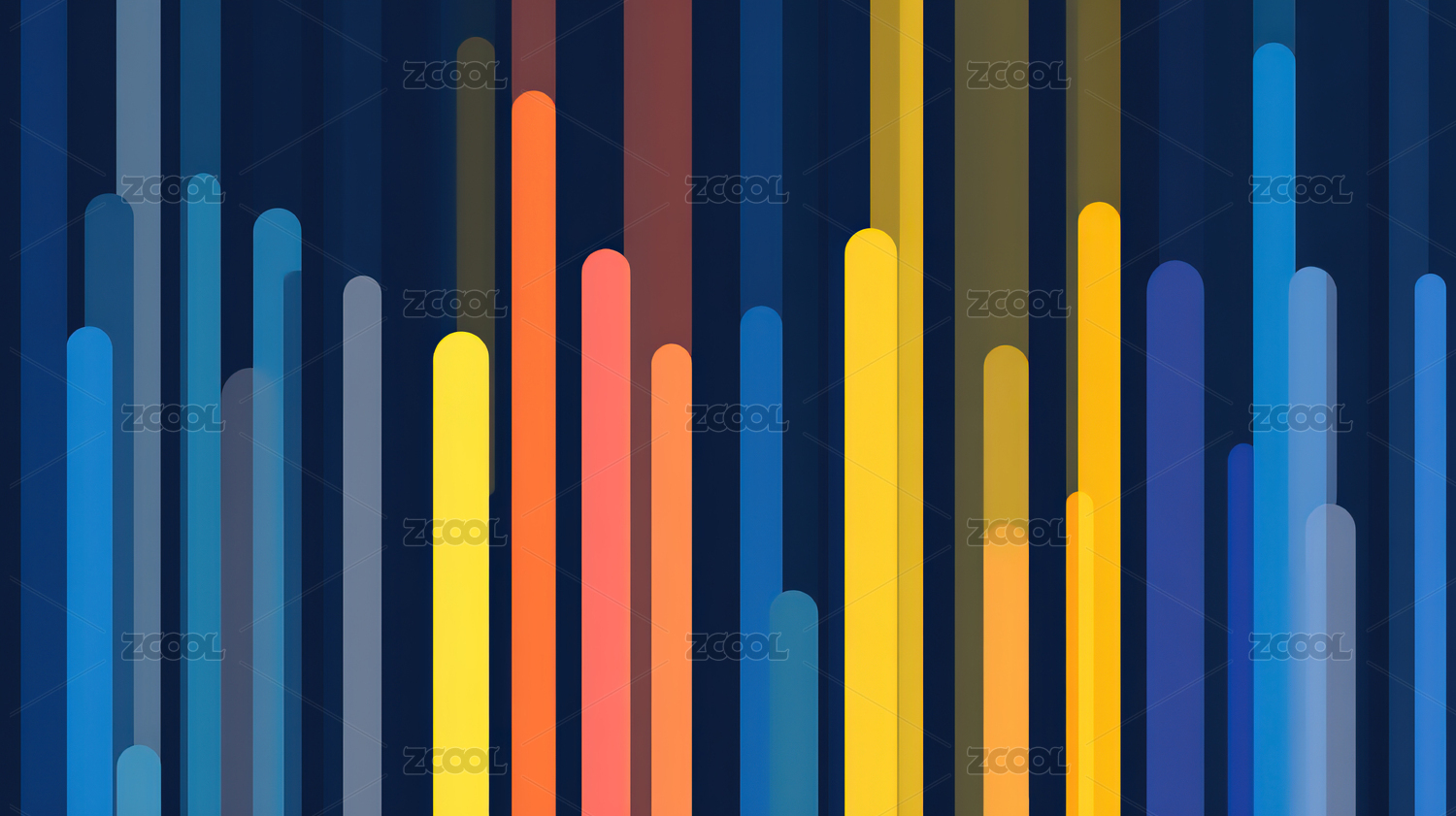 彩色渐变条纹映衬深蓝背景
