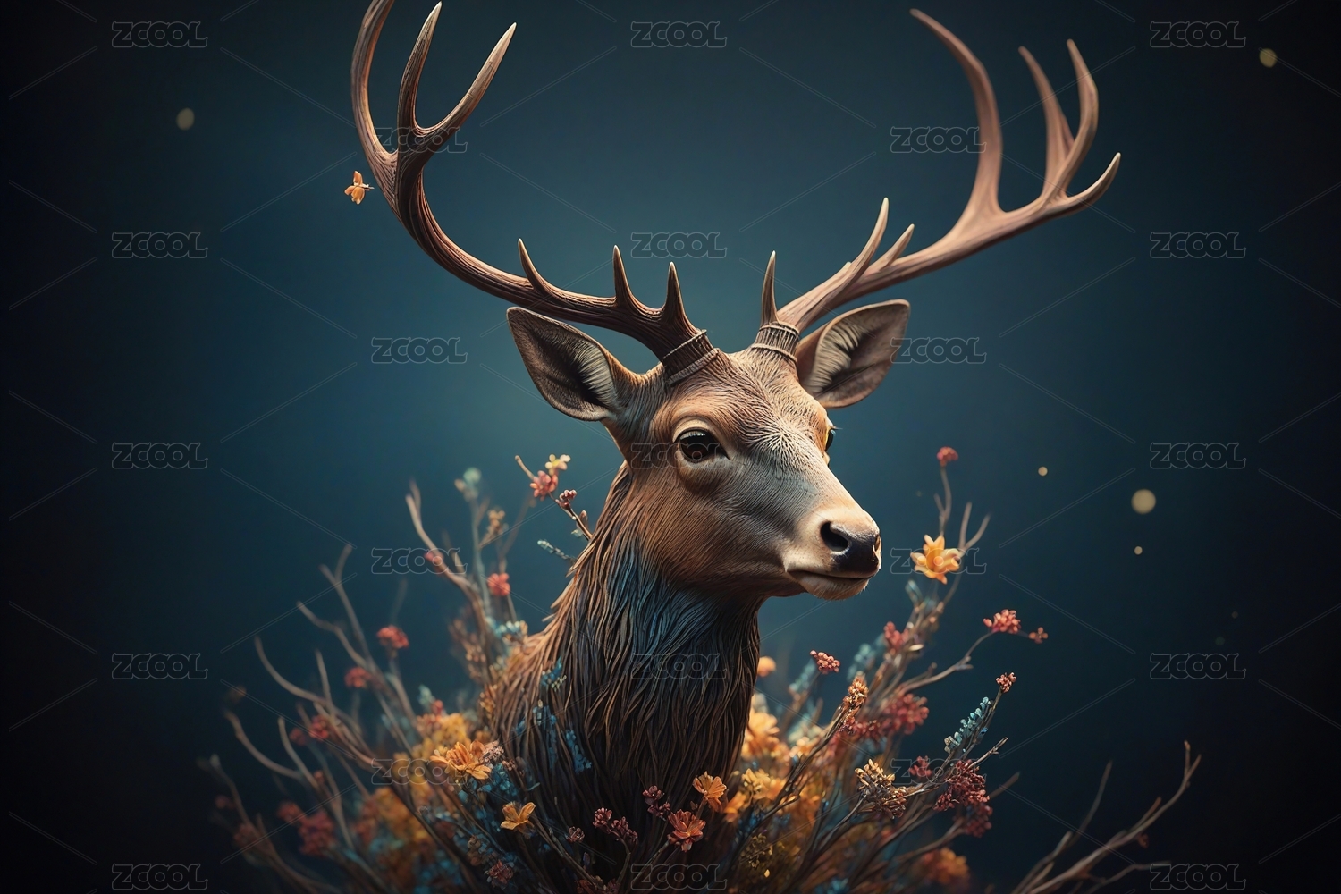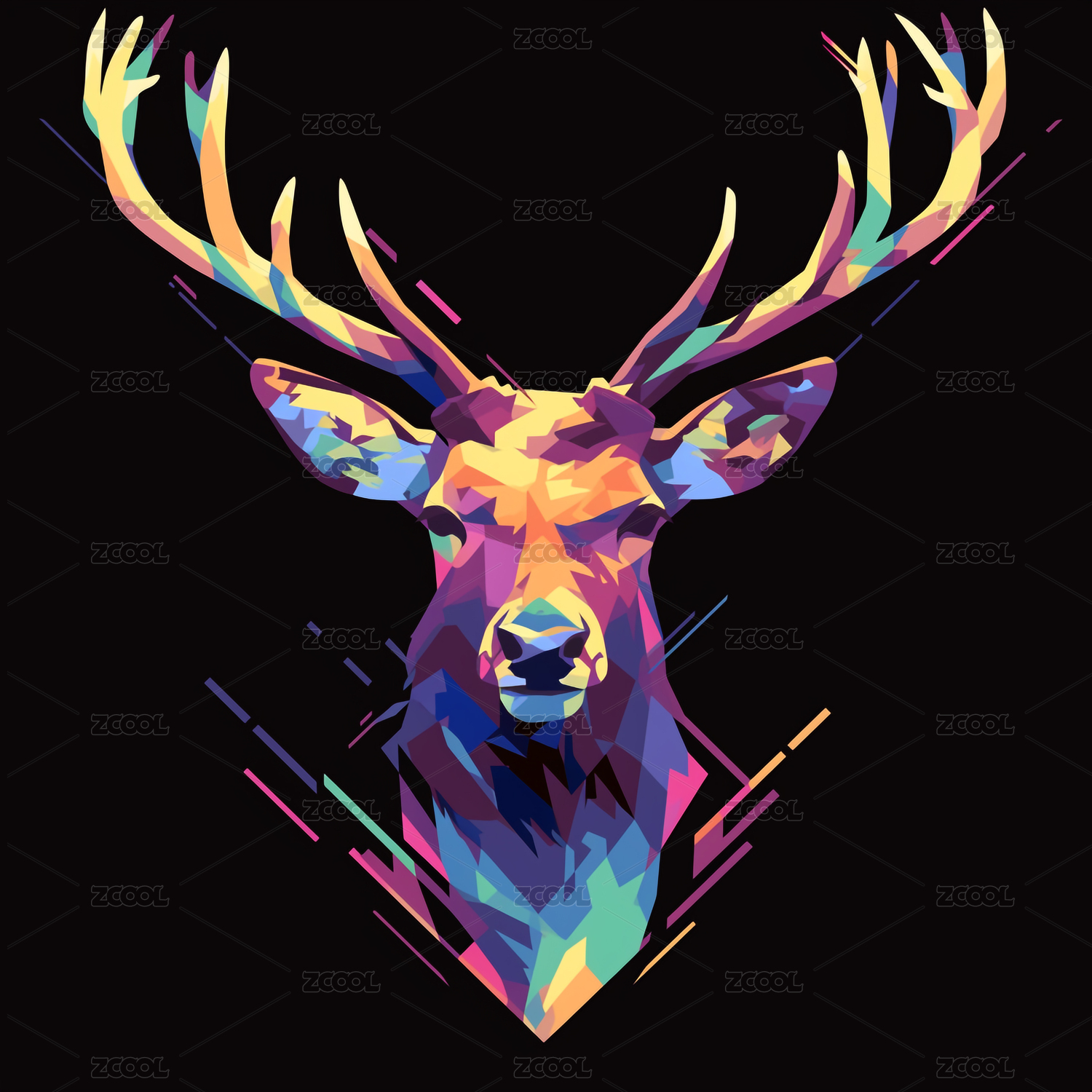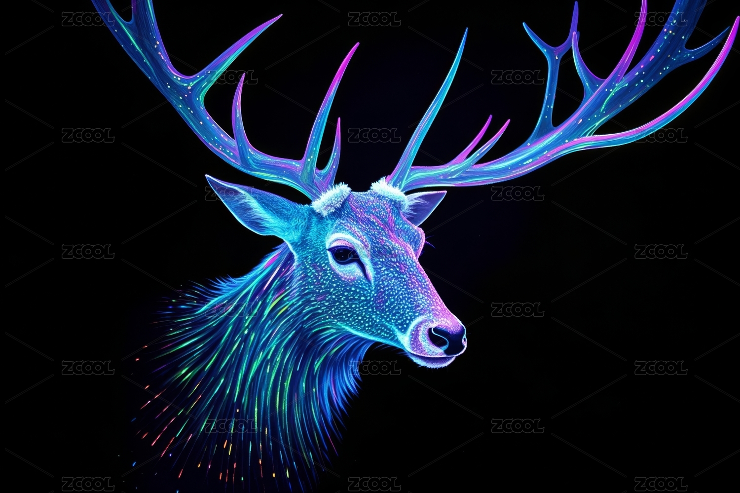神秘复古炫彩灯光下的麋鹿头像装饰画