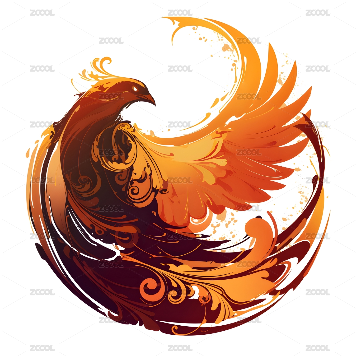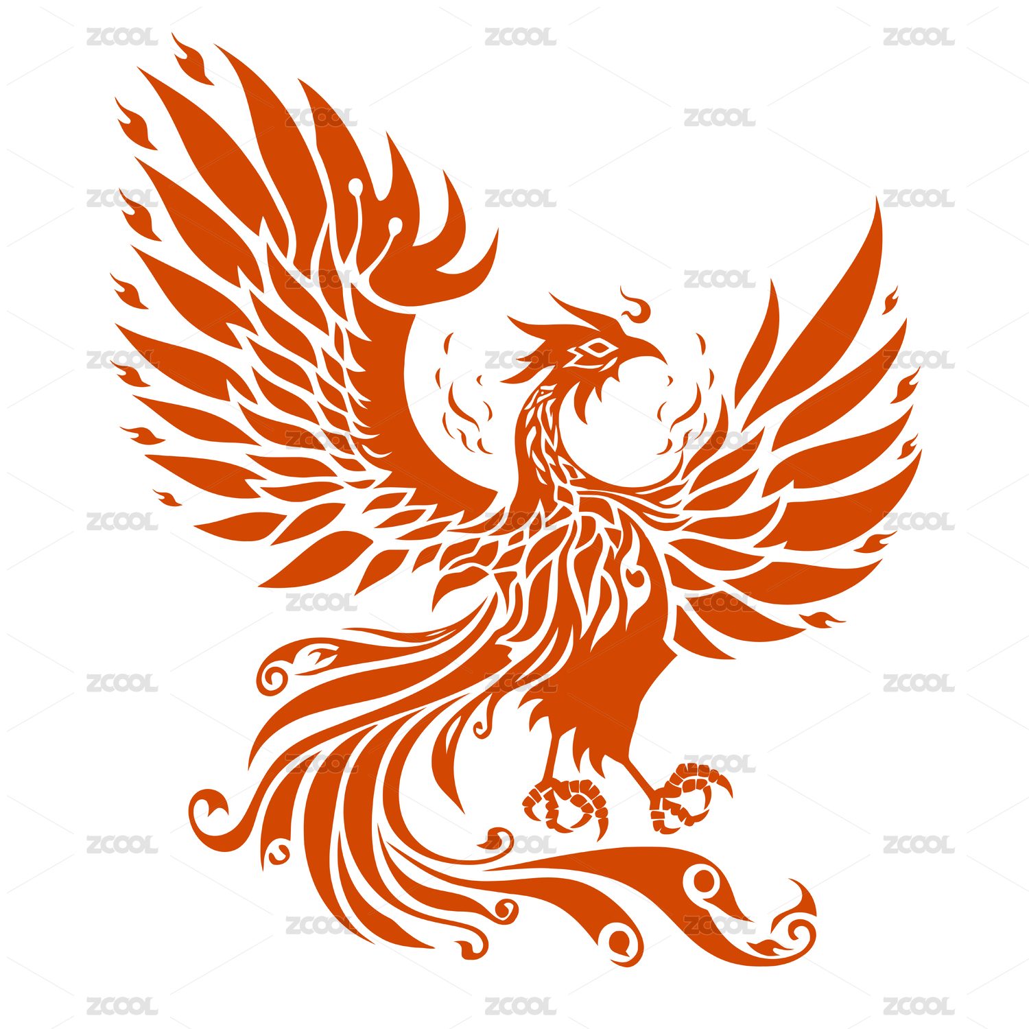 红色,凤凰,神鸟,头像,标志,设计,奔腾,线条,剪影,背景