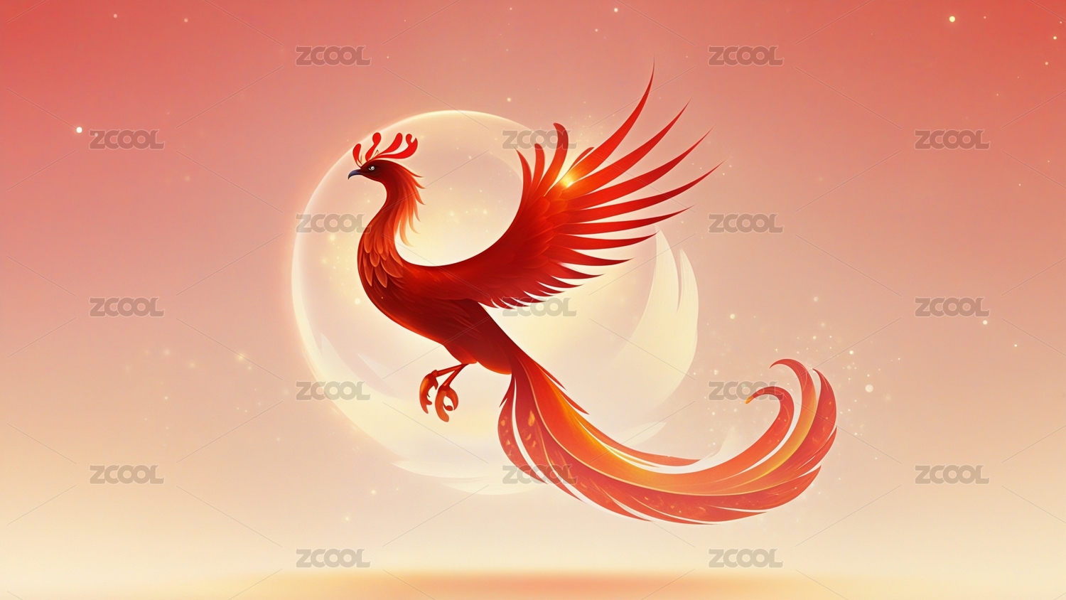 红色,凤凰,神鸟,头像,标志,设计,奔腾,线条,剪影,背景