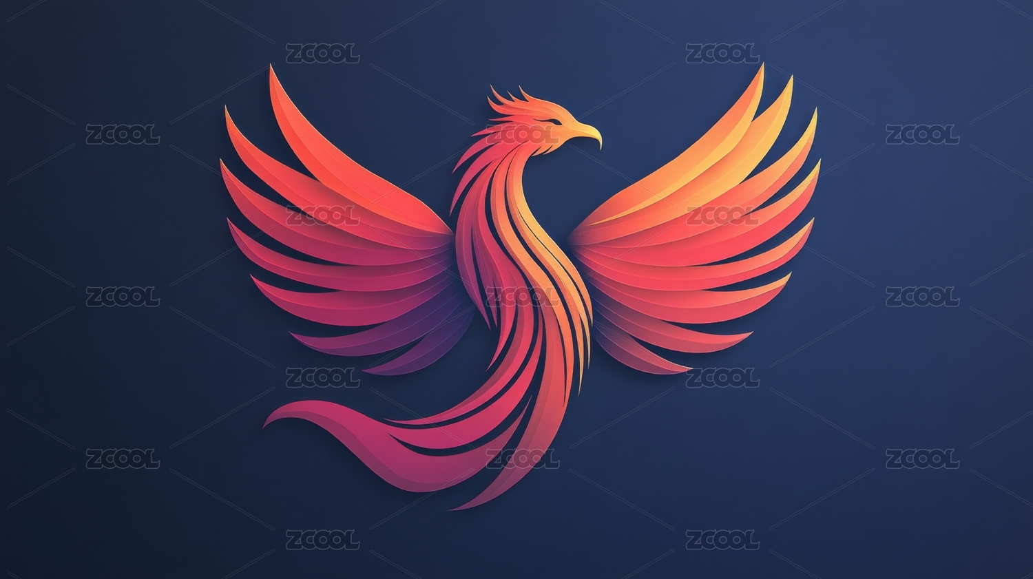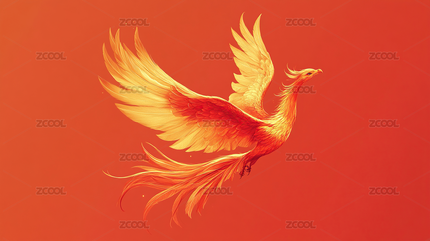 红色,凤凰,神鸟,头像,标志,设计,奔腾,线条,剪影,背景