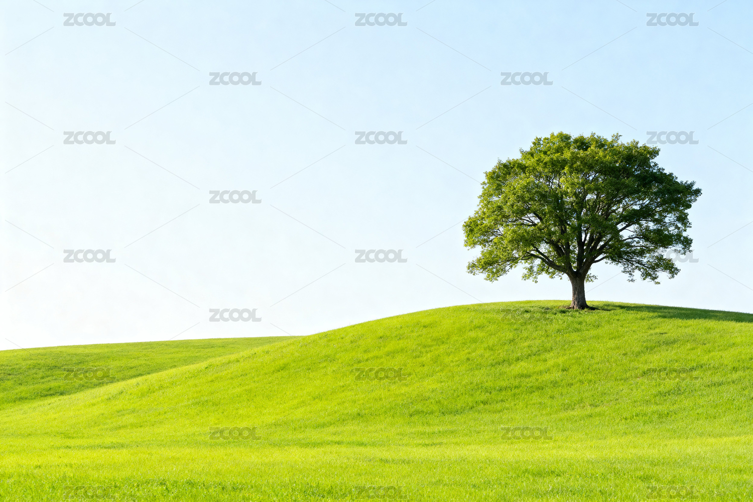 孤独的树在绿丘上