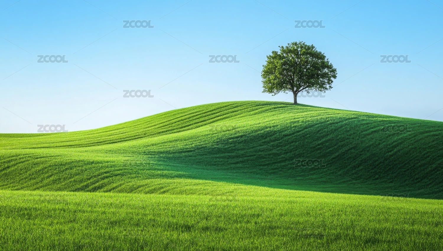 绿草地上的孤树风景