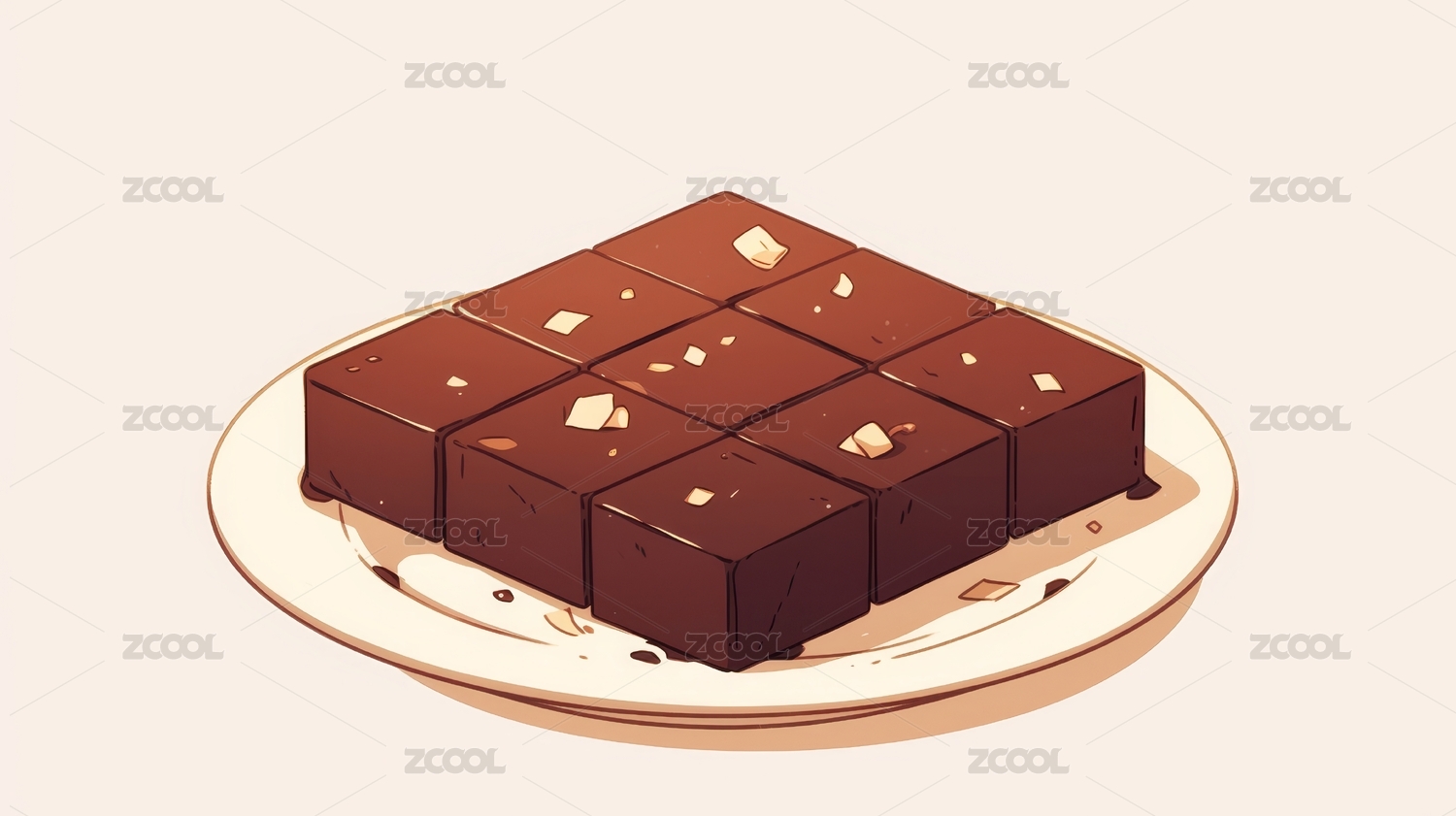 桌上棕色心型方块黑巧克力3D卡通食品插画