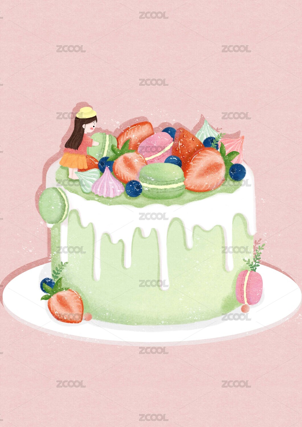 活动纪念日甜品蛋糕插画生日快乐场景插图