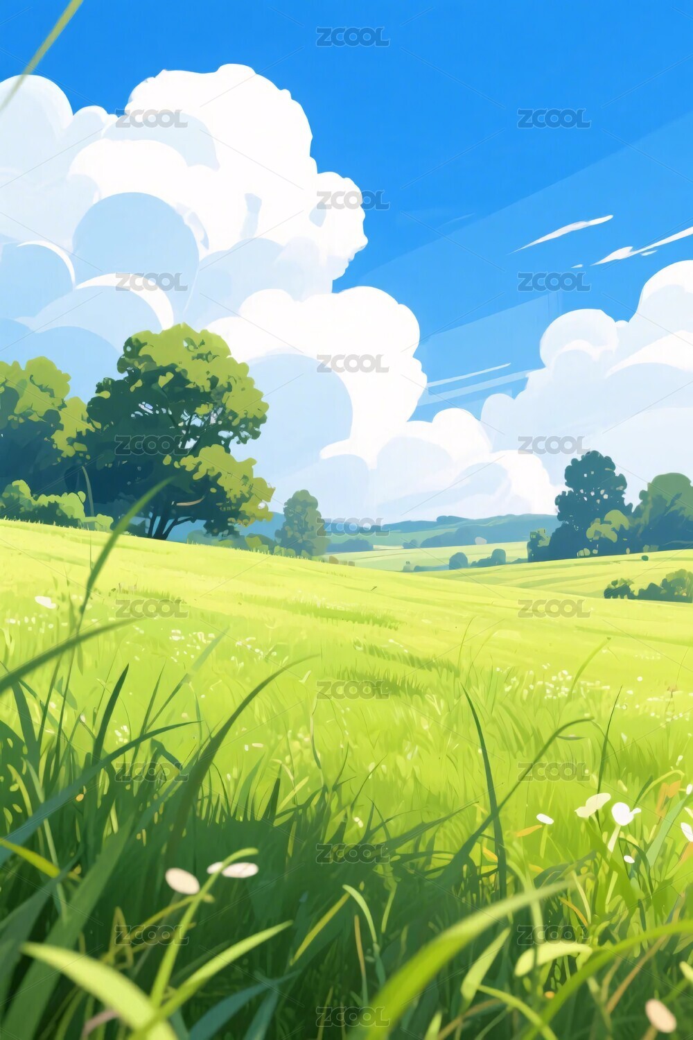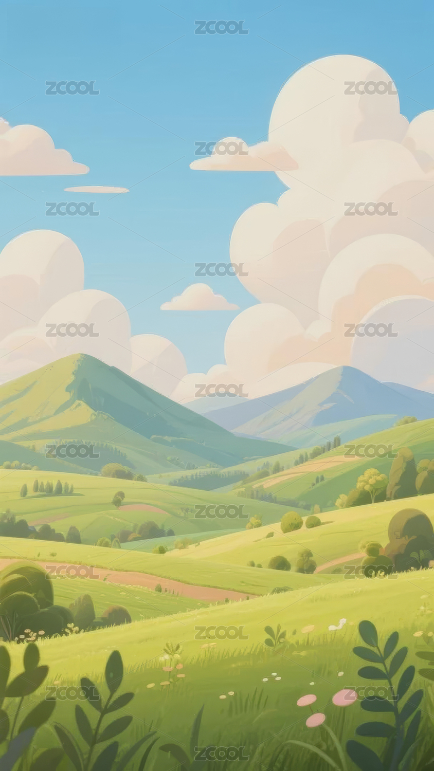 卡通蓝天草地