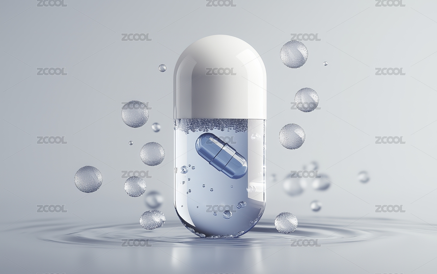 胶囊,小球,白色,悬浮,蓝色,海洋,医疗,化妆品,护肤,健康