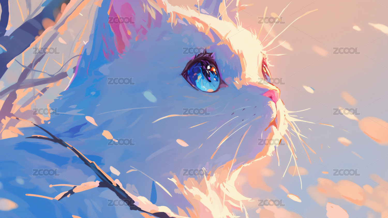 猫咪,蓝眼睛,粉鼻子,胡须,绒毛,光斑,梦幻,清新,柔美,光影