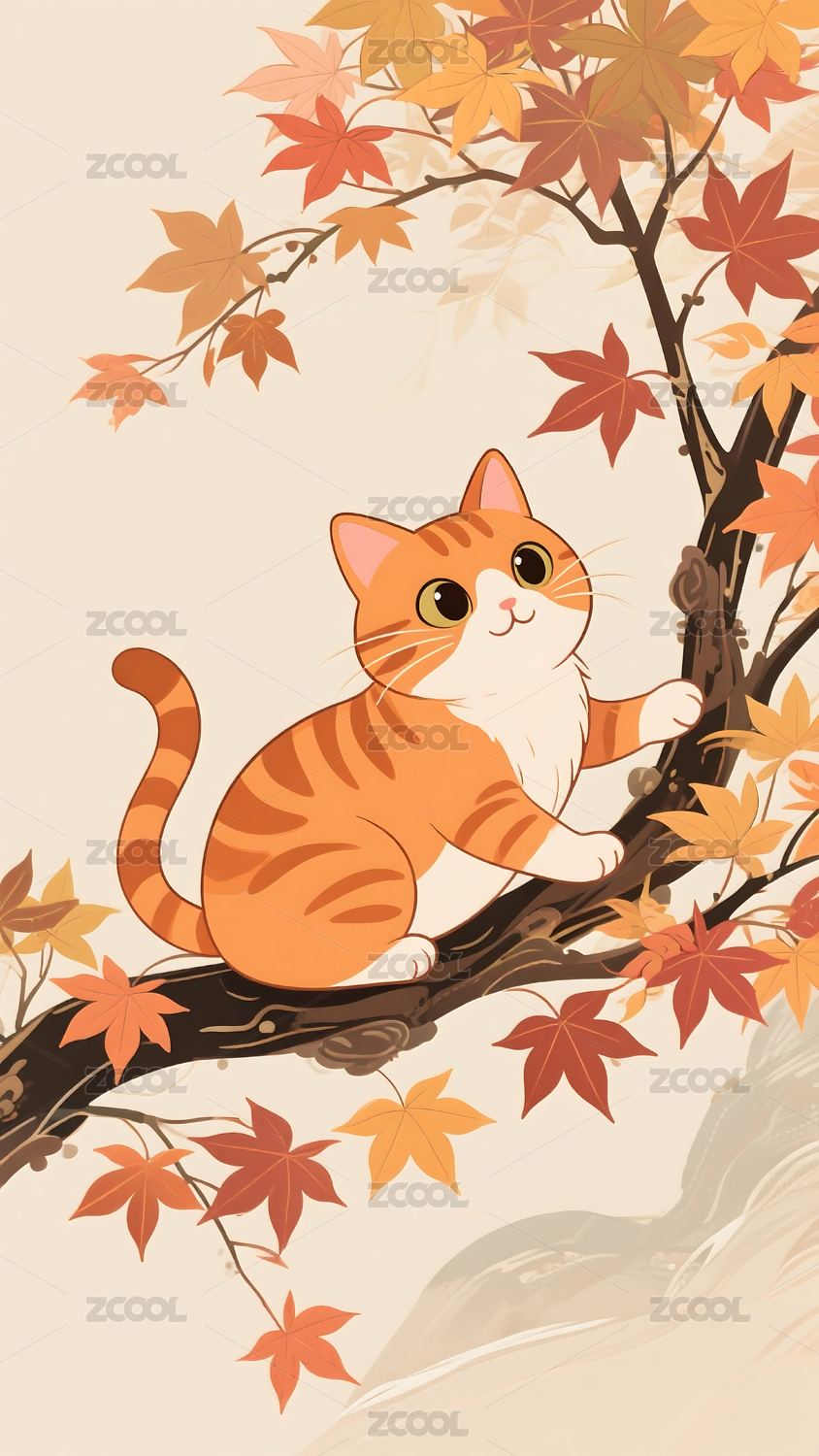 猫咪,枫叶,秋天,落叶,可爱,卡通,阳光,温馨,快乐,两只猫
