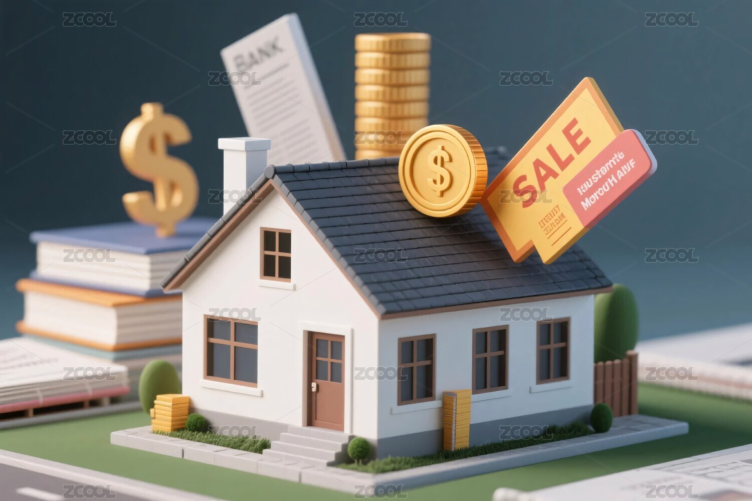 蓝白,房屋,模型,金币,木板,摆放,理财,储蓄,房产,财富