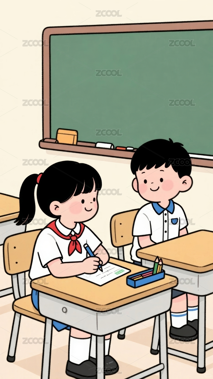 校园教室学生插画